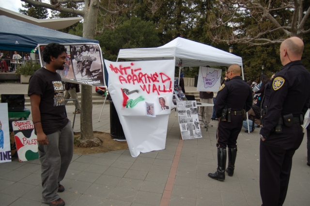 Students for Justice in Palestine held an exposition on Sproul Plaza which included three tents representing three cities that have and are dealing with issues of apartheid. The cities were Montgomery, Alabama, Soweto, South Africa, and Hebron, Occupied Palestine. Israeli students joined in solidarity with SJP by demonstrating against a Zionist organization.
