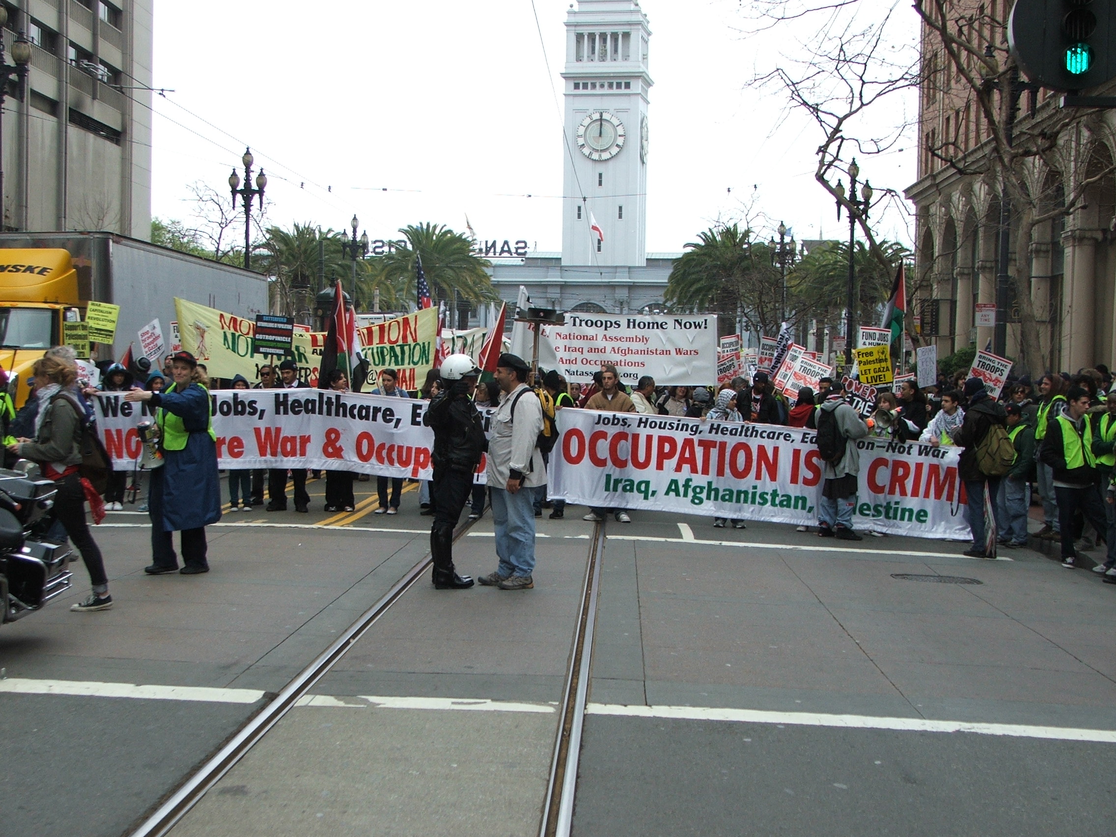 Marching against the wars and occupations in S. F. on March 21, 2009.