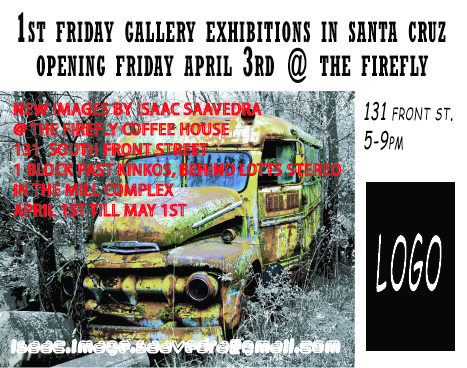 Photographs and Paintings. The opening is Friday April 3rd during Santa Cruz First Fridays art walk. Many nearby galleries will be hosting opening exhibitions.