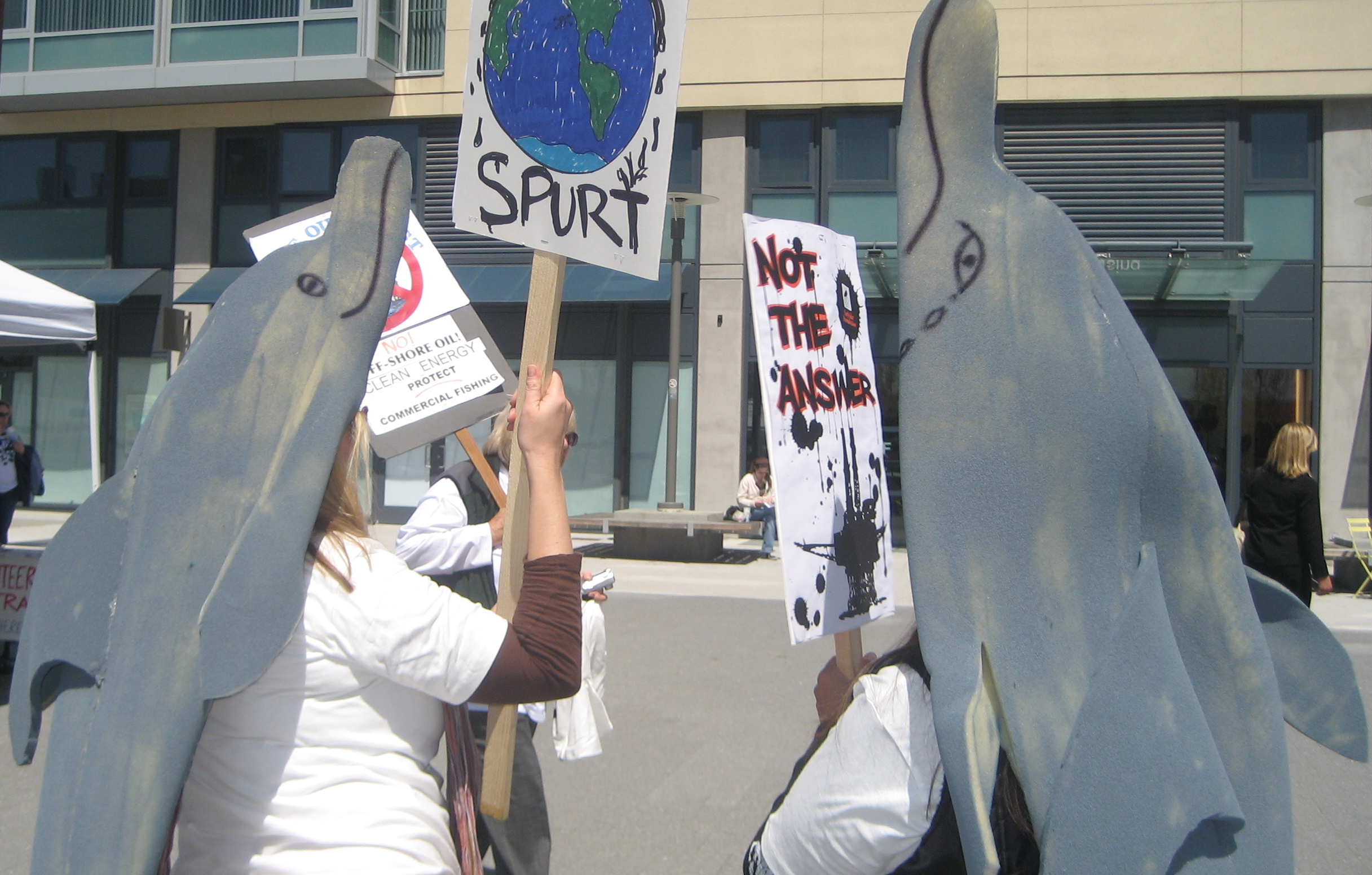 Sea urchin and jellyfish are not mere marine life to be tasted at Japanese and Chinese restaurants. They are among the coastal creatures endangered by offshore oil drilling and were well represented along with sea turtles and dolphins at a rally held in San Francisco on April 16.