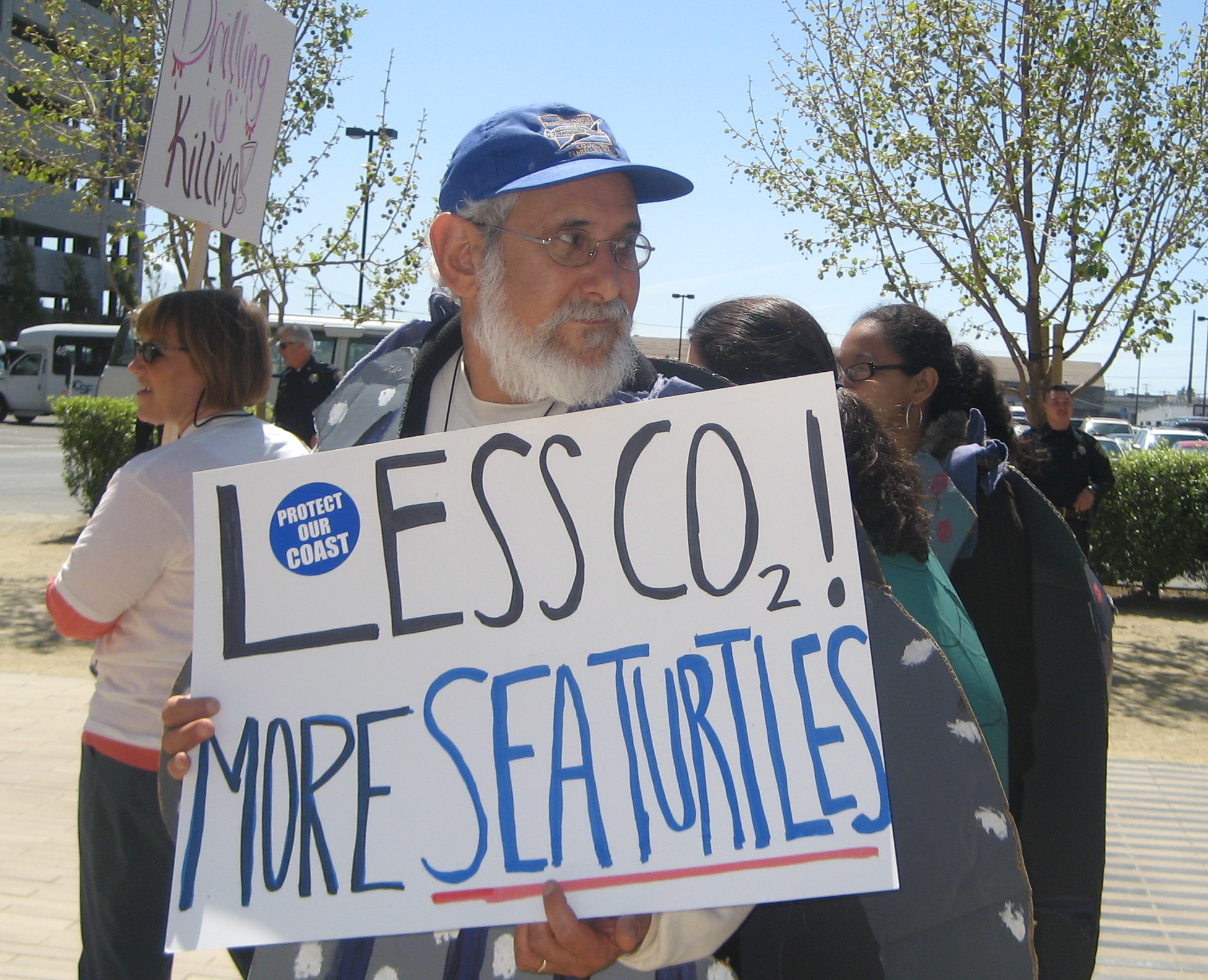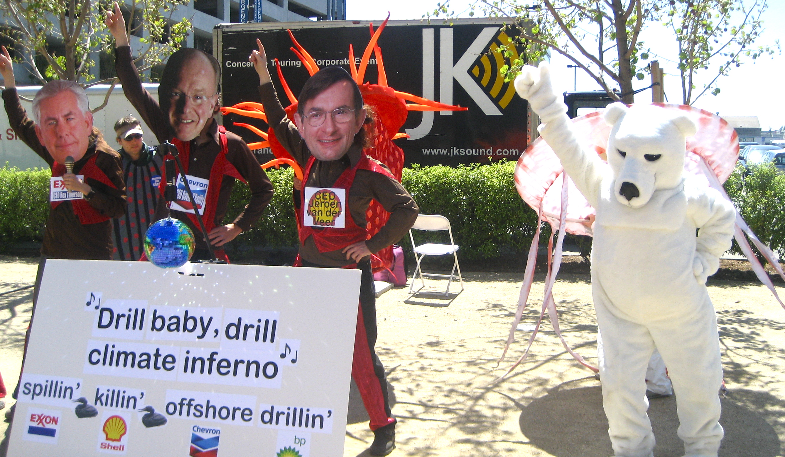 A coalition of environmental groups held a rally featuring music and street theater outside a public hearing to press Interior Secretary Ken Salazar NOT to open new areas of the West Coast to offshore oil drilling.