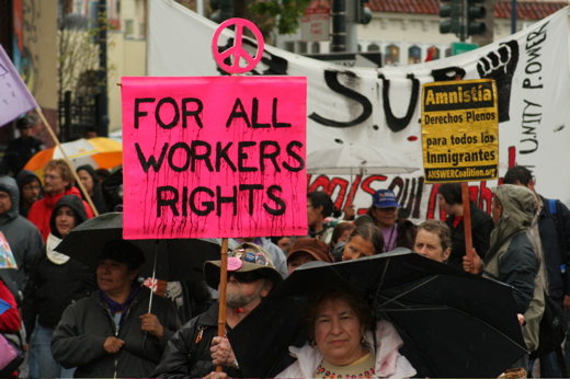 Hundreds of people marched through the streets of San Francisco on May Day...
