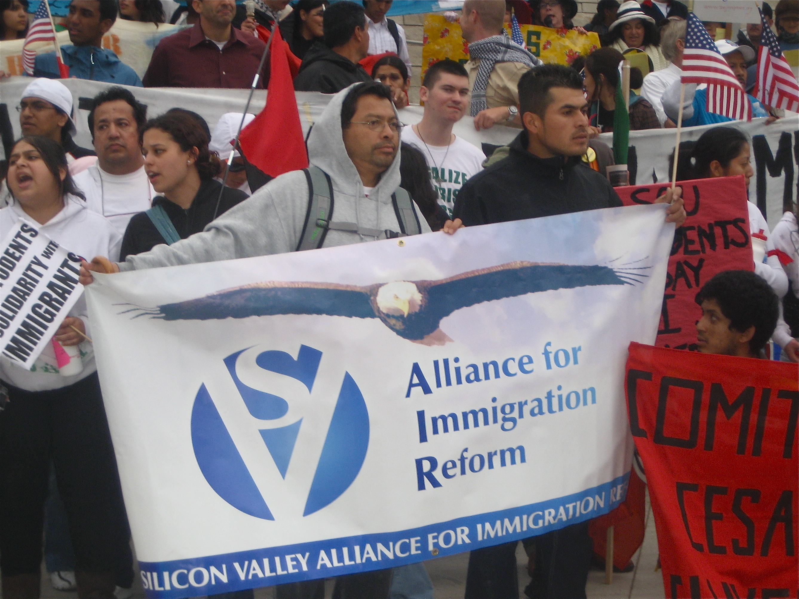 International Workers Day saw not only signs for immigrant rights, but for workers rights internationally, a free Palestine, and justice for Oscar Grant.