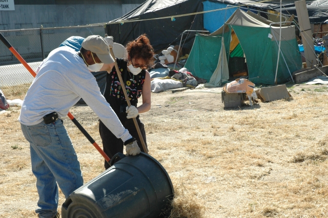 Homeless Clean-up their Encampment with the help from the National Network in Action