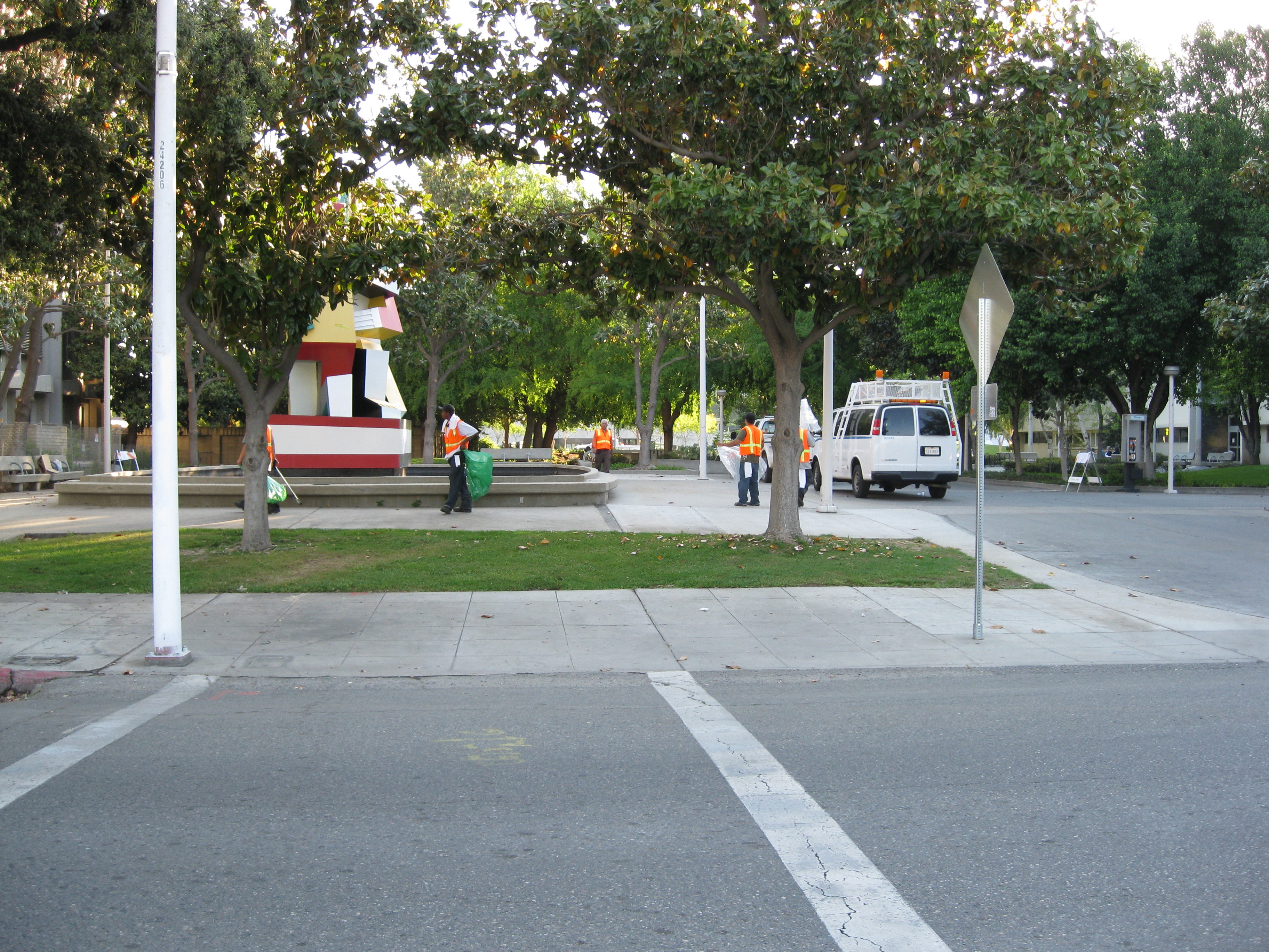 Several homeless advocates monitored the “clean up” and removal of homeless people’s property on the morning of April 22, 2009 by City Sanitation Workers. “Clean ups” at the Mariposa Mall site, just west of Fresno City Hall, are conducted about once a month. City Sanitation puts up signs announcing the date of the clean up, most of the homeless people move out shortly before they arrive, and move back later in the day. It is a meaningless game of cat and mouse that is not intended to help the homeless or make their life better in any way. As a result of this constant harassment, sometimes the homeless lose their property. This happens if they are gone for a few days visiting a friend or family member when the city “cleans up” this encampment.