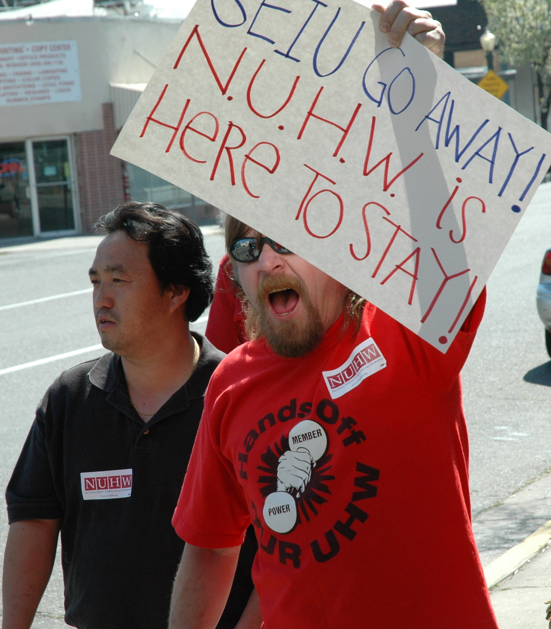 “We want to stay united in NUHW with the leaders we elected,” said Janet Shepherd, a respiratory therapist at Northridge Hospital Medical Center. “They helped us build our union and win the best healthcare contract standards in the country. Why would we want to be part of an SEIU union run by unelected staff we’ve never heard of?”