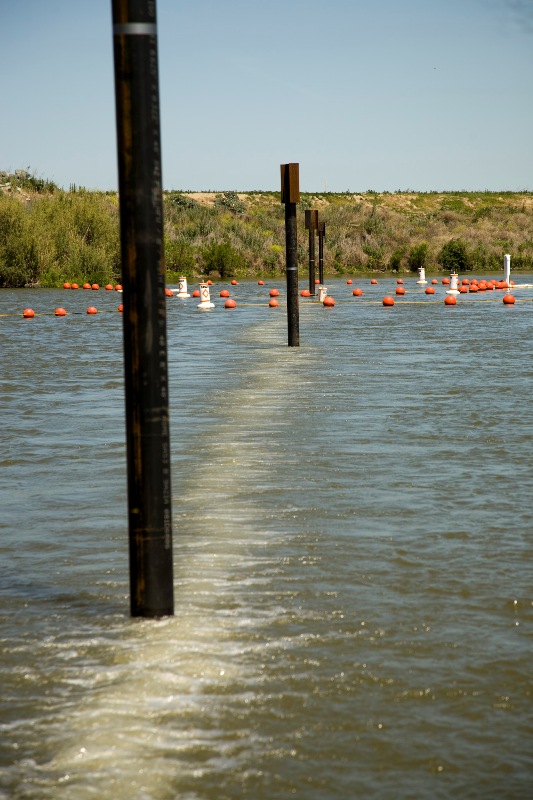 "The bubble-curtain is being tested for use instead of a rock barrier that has been installed each spring in previous years to help keep juvenile salmon from straying into Old River as they out-migrate from the San Joaquin River through the Sacramento-San Joaquin Delta," according to DWR. "Preliminary results show that an experimental, non-physical fish barrier is working to help keep young Chinook salmon and steelhead in a more direct path to the ocean and away from agricultural diversion and the state and federal pumping plants.”