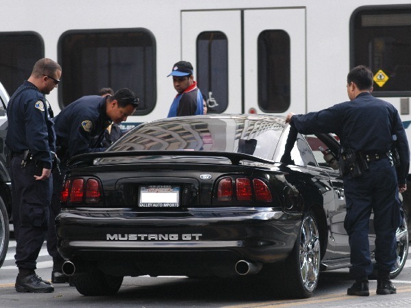 This writer walked along Santa Clara Street from Fourth Street to Market Street for a half hour from approximately 6:10 pm to 6:40 pm and again from about 7:10 pm to 7:40 pm. The time in between was spent walking down Market Street to San Carlos Street and Almaden Boulevard. Standing well out of the way of police and the stopped vehicles, I photographed each incident to document the police stop and also to let police know that they were being monitored. Police behavior is known to be better whenever citizens are deliberately watching. Grassroots organizations such as Copwatch and Silicon Valley De-Bug use these tactics to monitor and discourage police abuses.