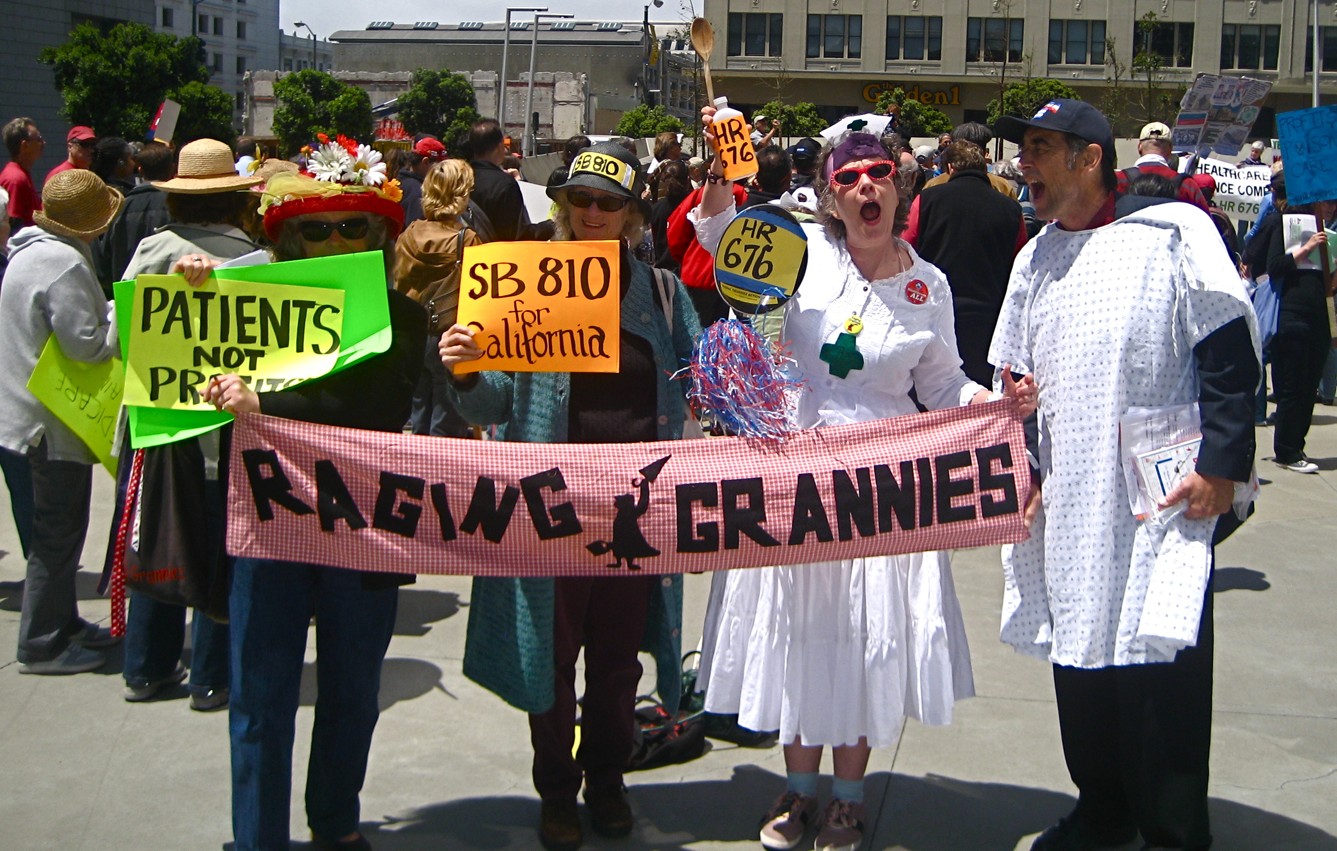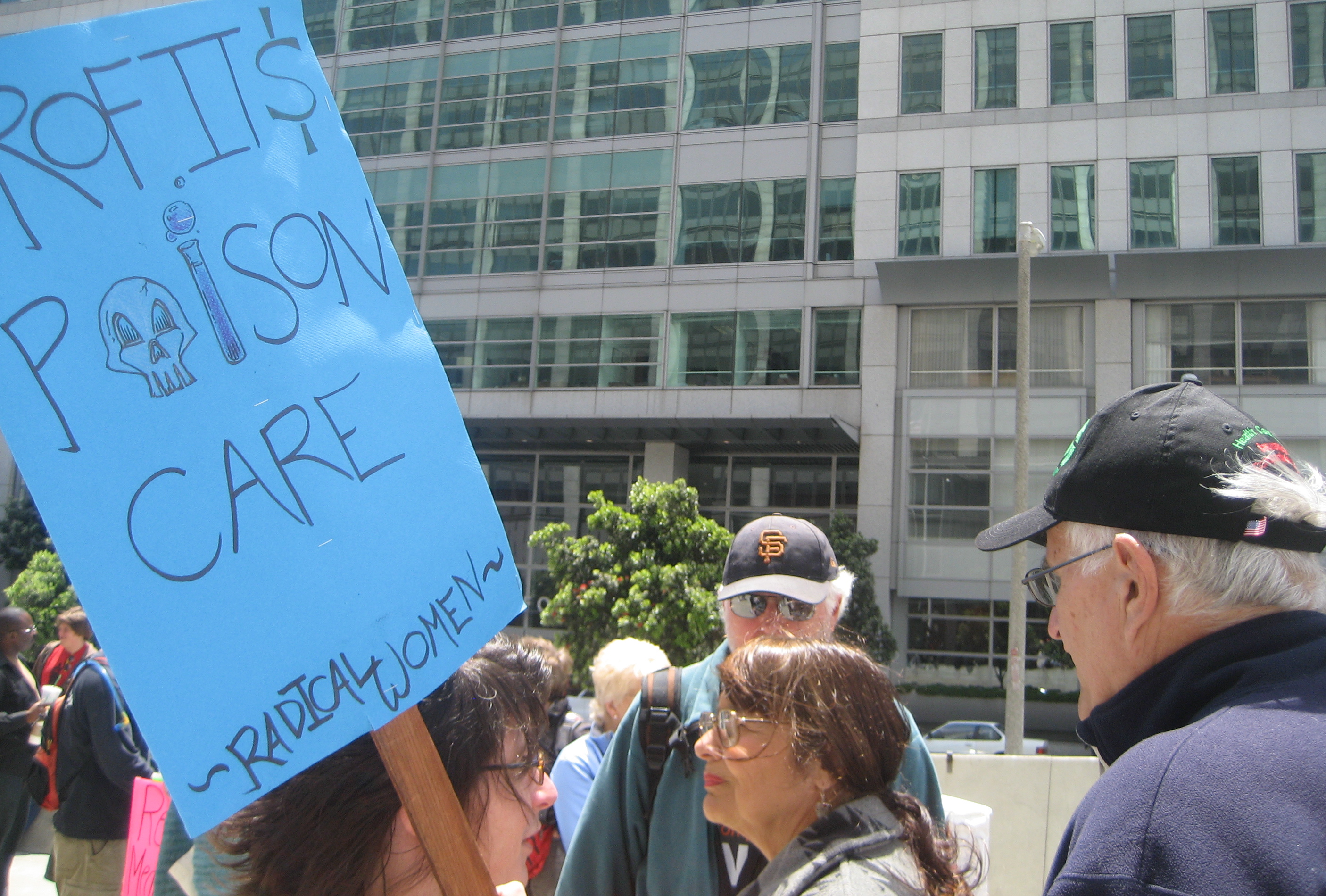 A group of supporters of Single Payer Health Care rallied in front of the Federal Building which houses Congresswoman Nancy Pelosi's office. They demanded that Pelosi foster a discussion on the Single Payer legislation, HR 676, the US National Healthcare Act.