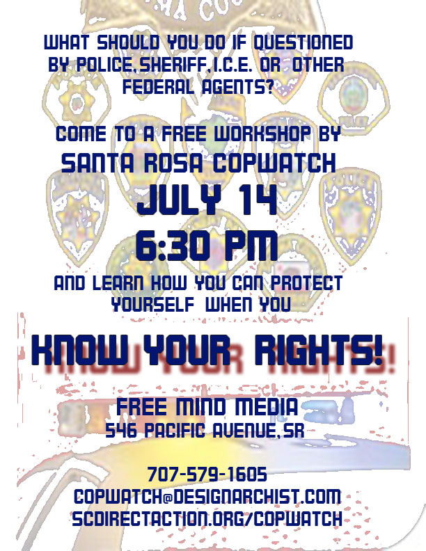 One of our regular workshops about how to handle encounters with law enforcement within the context of your constitutional and legal rights, as well as practical advice on what to do when approached, harrased, or questioned by the cops.