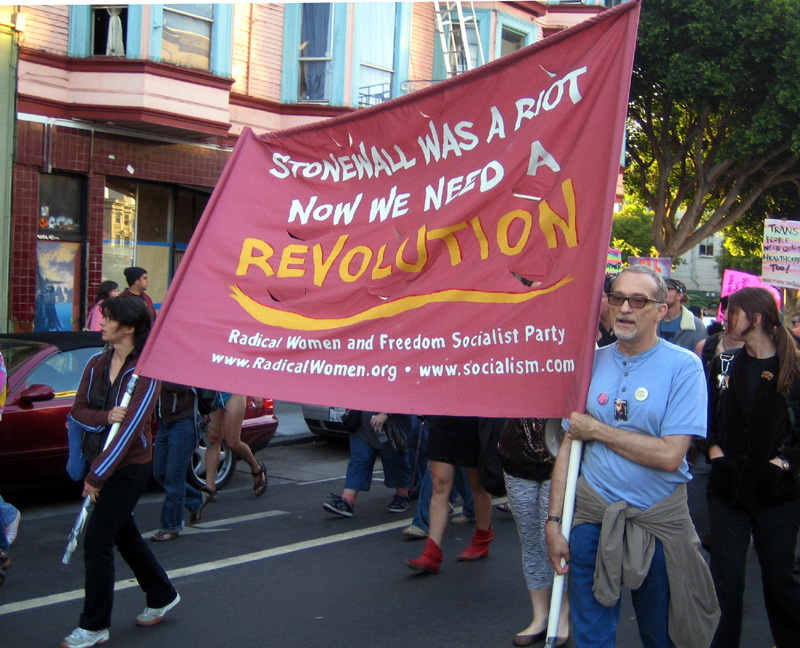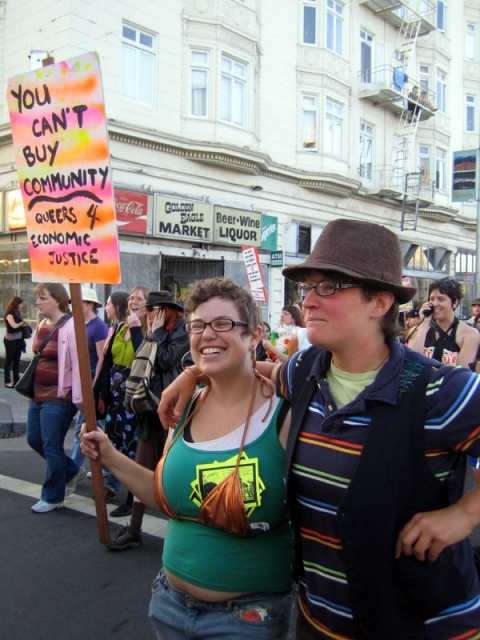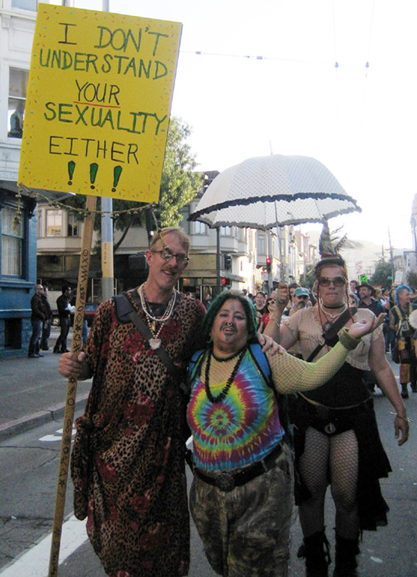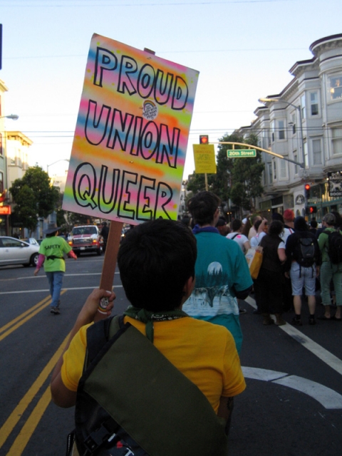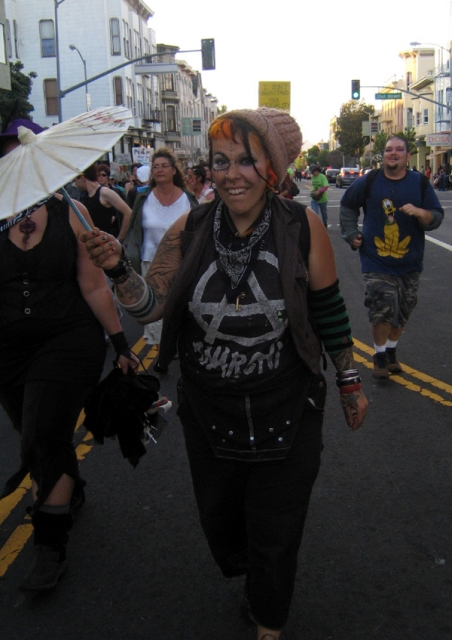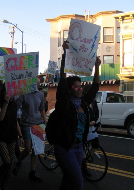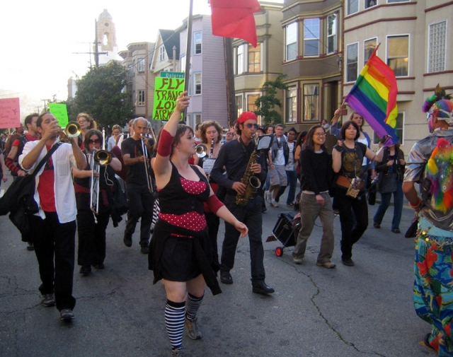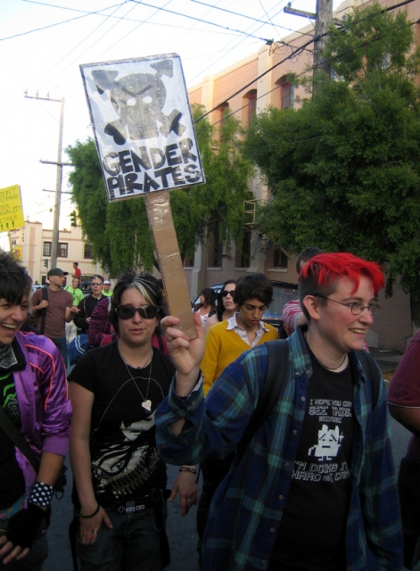 The annual Trans March took a different route this year, from Dolores Park through the Mission. The crowd wasn't ready to stop at the announced ending point, so a group took Cesar Chavez Street and continued on to after-party at El Rio. A smaller subgroup kept on marching...