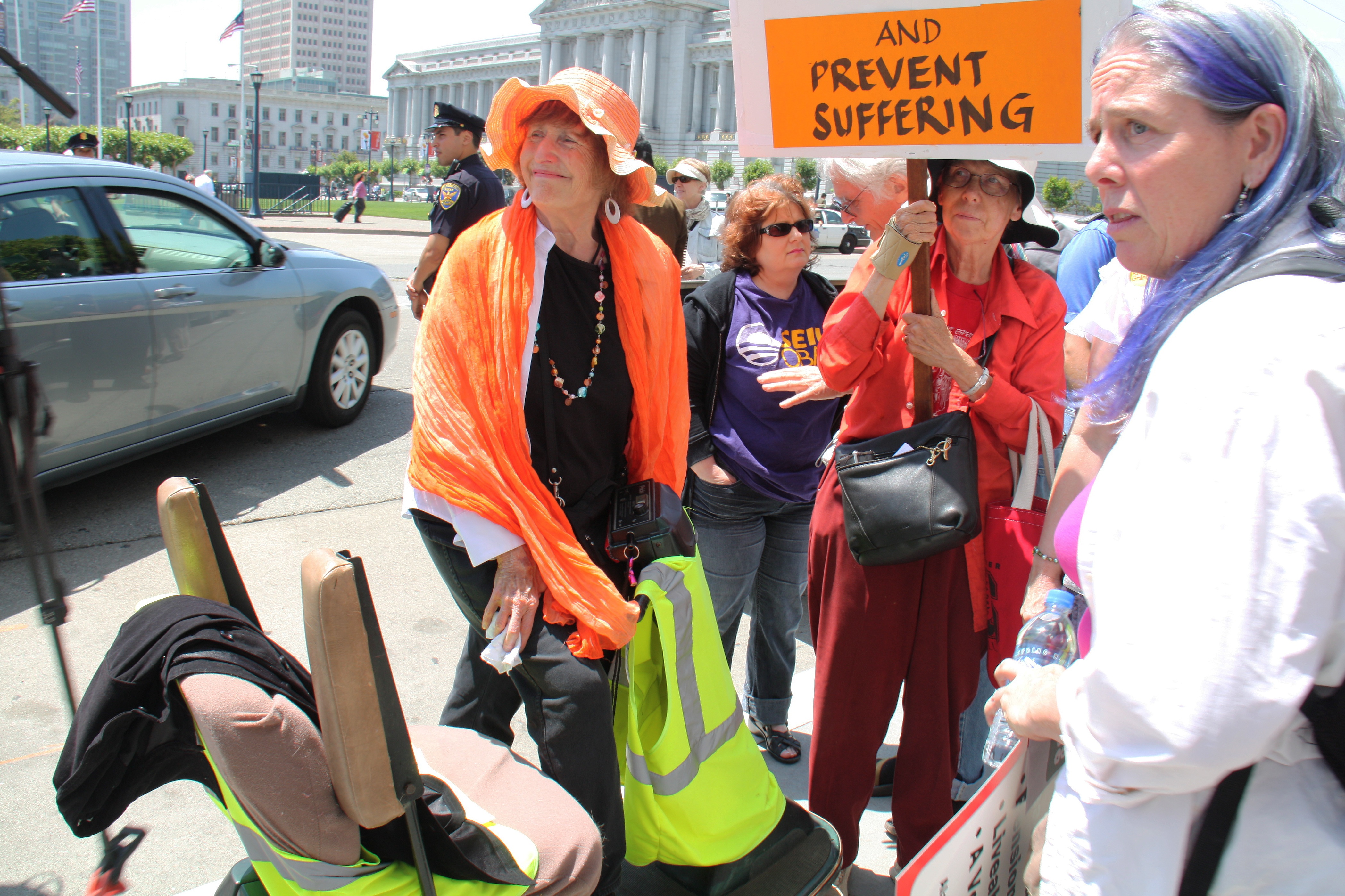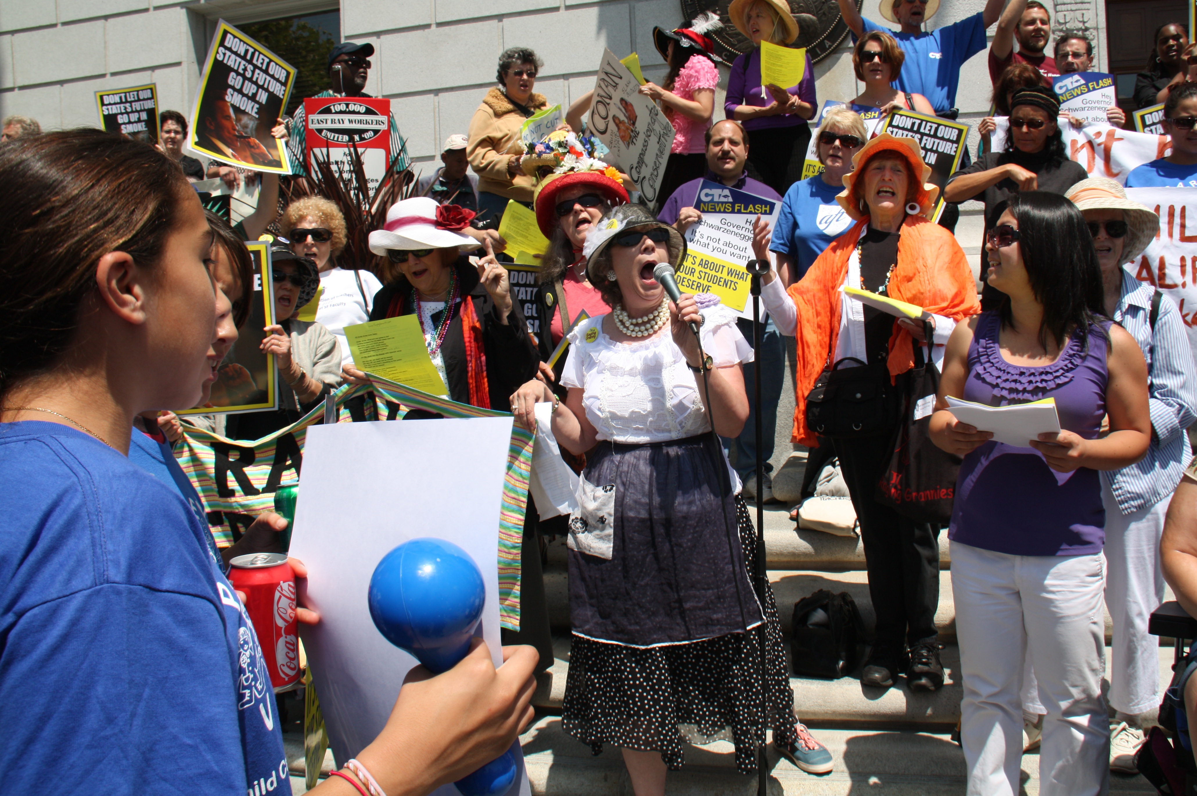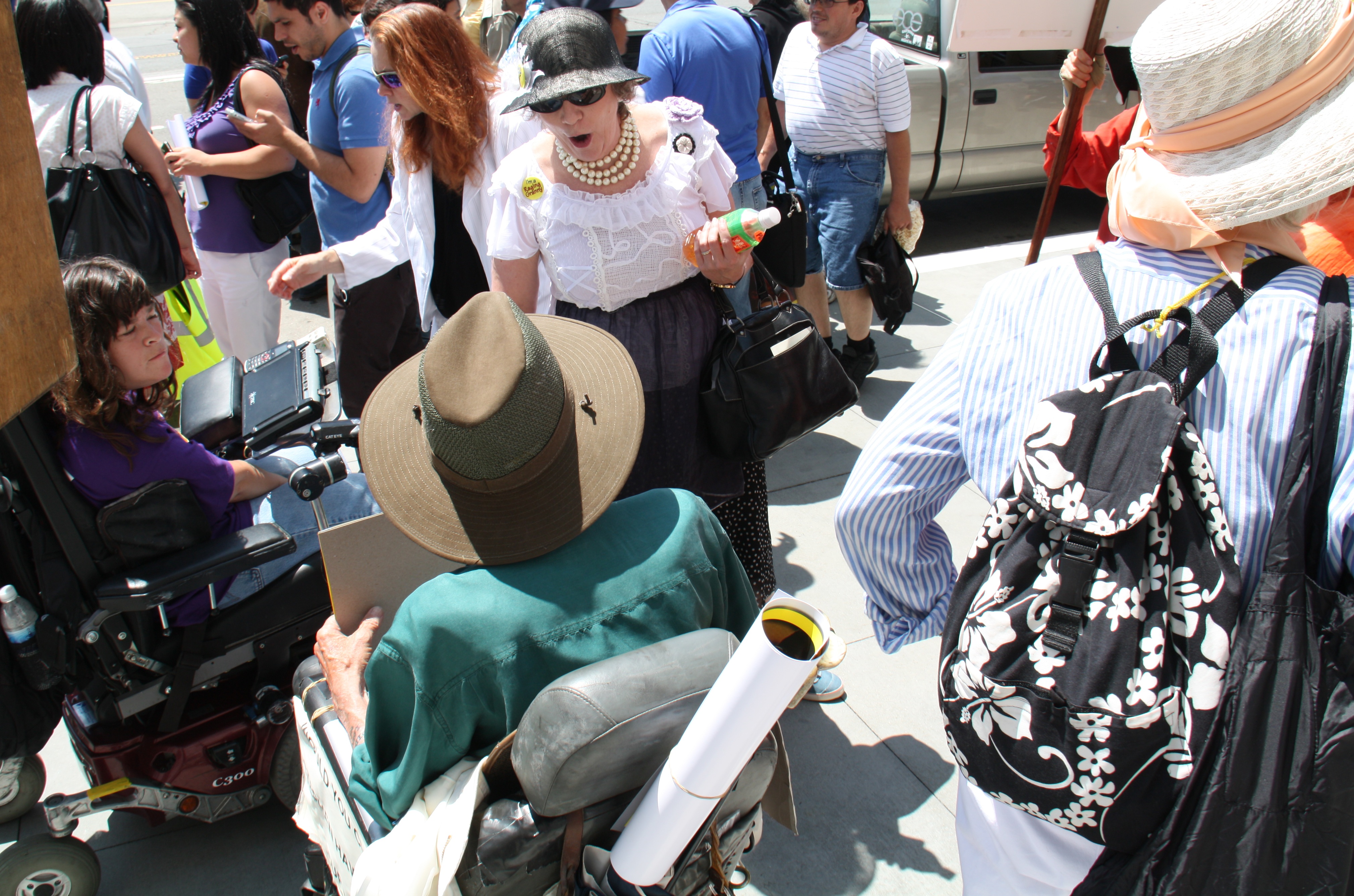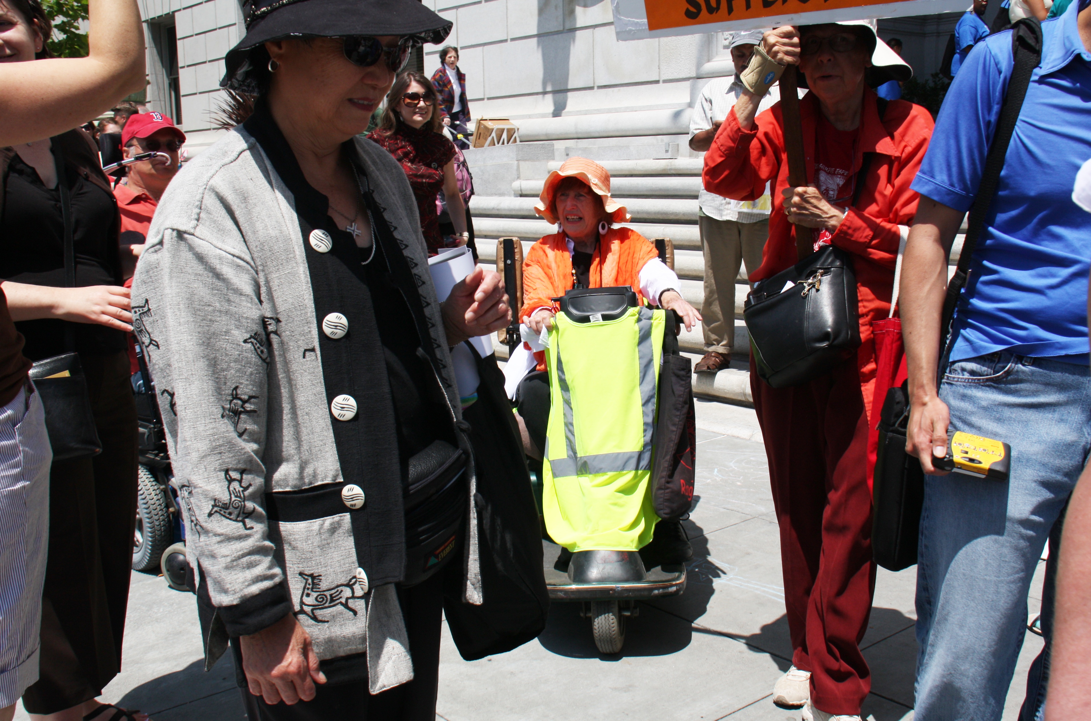 On July 15 disability activists and service providers from a variety of organizations answered that very question. They gathered in front of the governor's office in San Francisco and spoke and sang their message as follows: