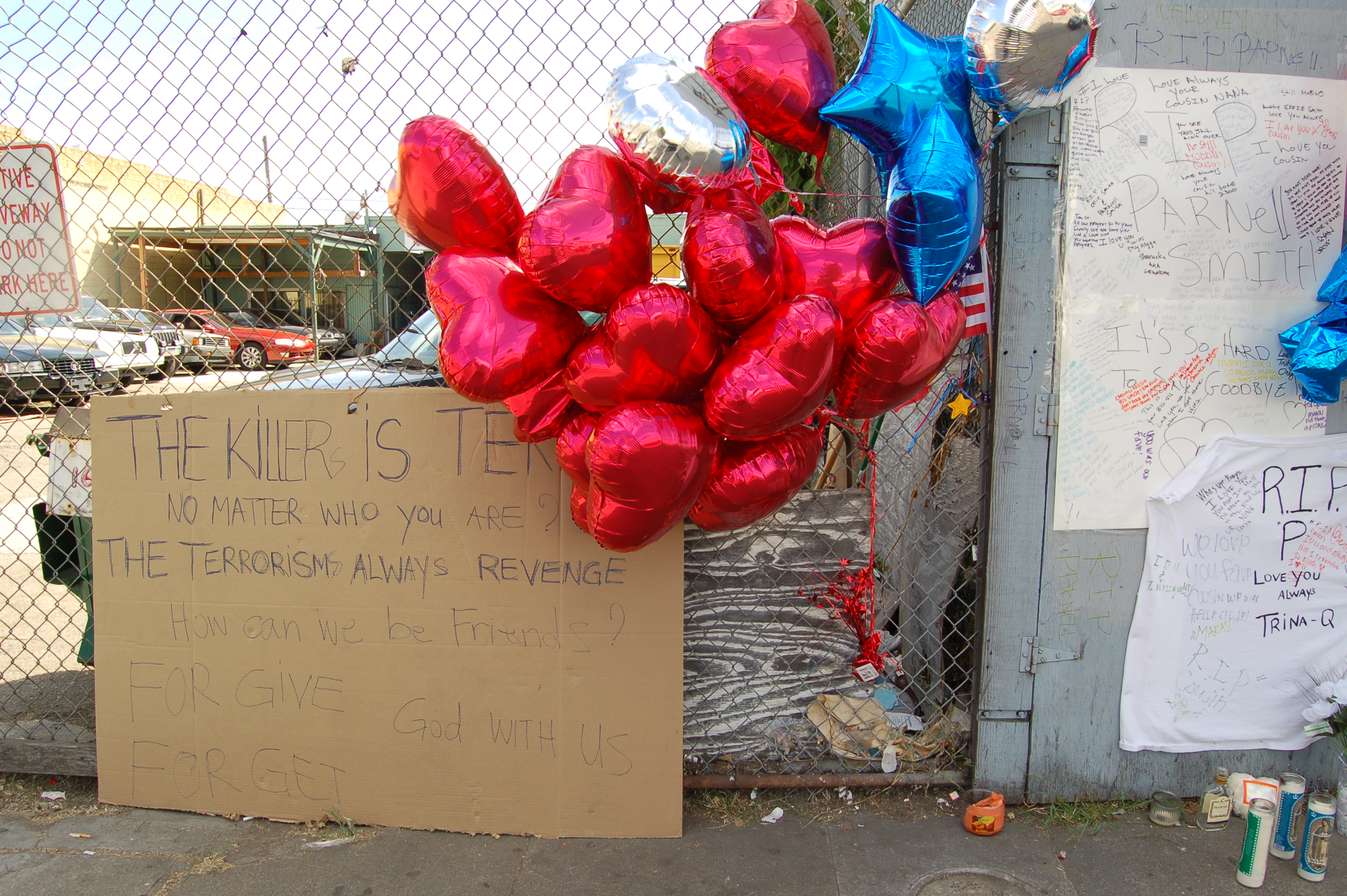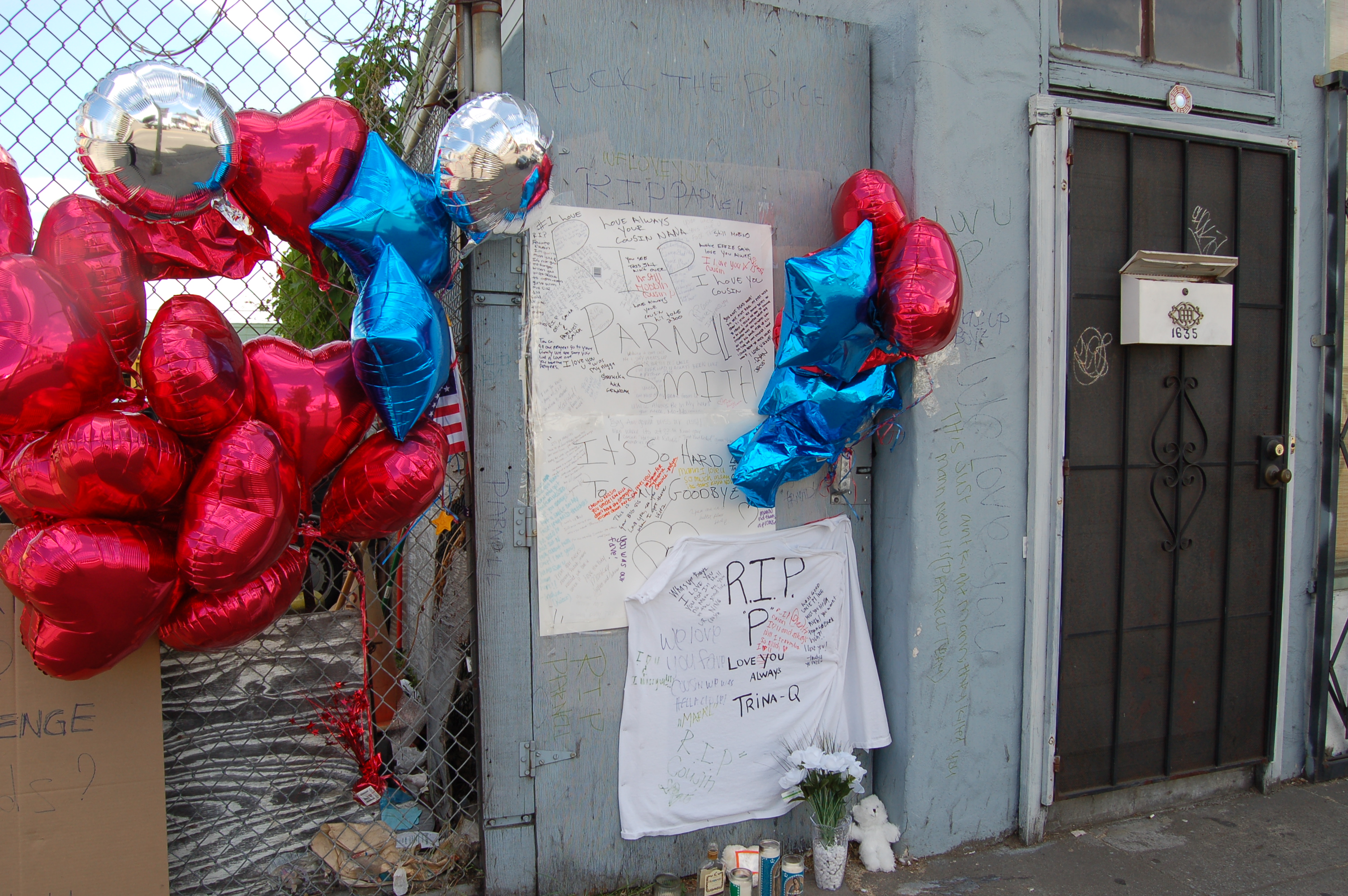 I took some pictures of the area where Smith was killed, and of a little memorial put in his name. I tried to talk to some of the people around about what had happened but they all seemed to be afraid to speak. Some asked me not to take any pictures of not only them, but of their business as well. I was left with many questions that I doubt will be answered by the OPD or the two cops that killed Smith. Within hours after the killing, the cops were assigned a lawyer who will undoubtedly work hard. His labor will only insure that the killing of black men by the OPD is normal and part of regular procedure.