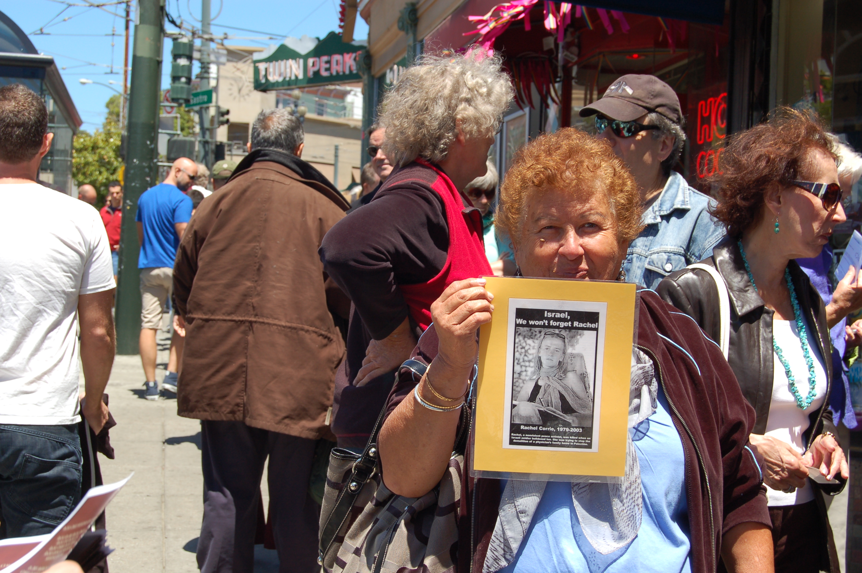 On Saturday the movie Rachel was presented in the Castro. A demonstration in support of the movie and against Israel’s occupation of Palestine was held outside. Lines to the movie were starching all through Castro street up to Market. Although Zionists threatened to demonstrate and shot down the film, I did not notice any other then a few.
