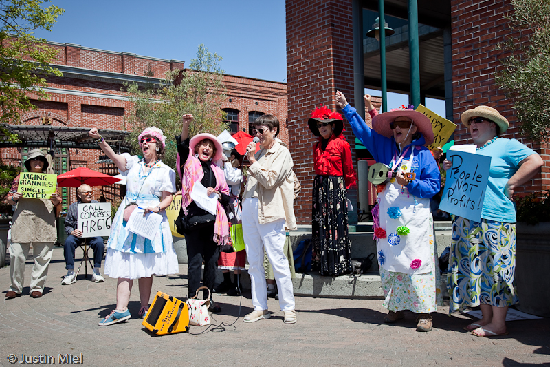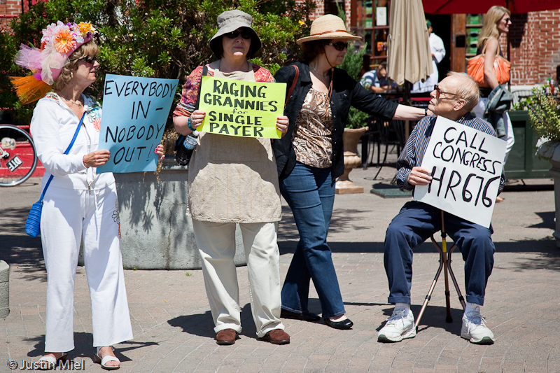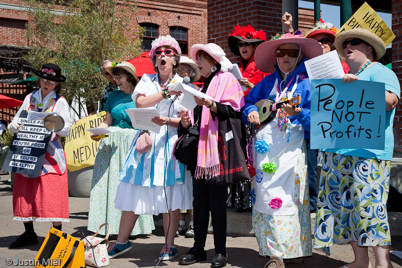 These songs for the only REAL plan, a single payer health care plan, enlivened a rally on the 44th anniversary of Medicare (a successful single payer plan) in Menlo Park, California.