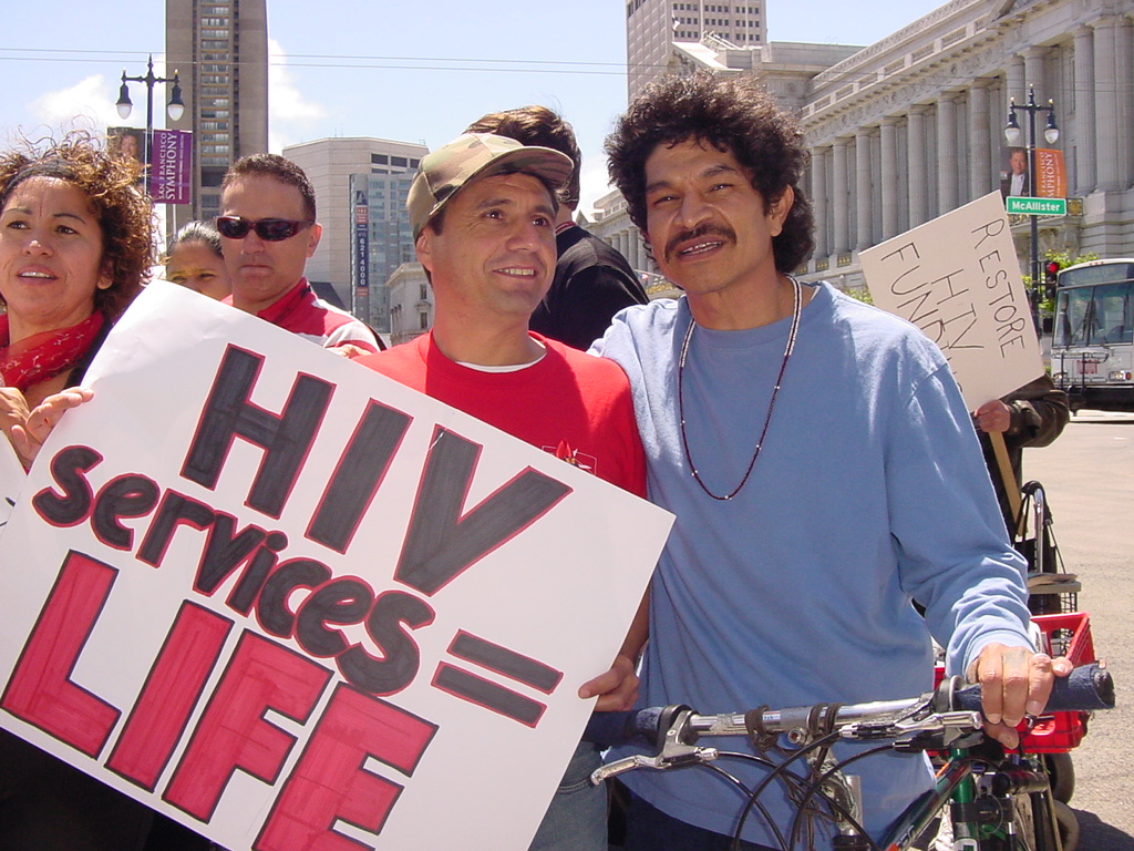 Protesters met today in San Francisco to protest Governor Schwarzenegger's budget cuts which disproportionately target health services fighting the spread of HIV.
