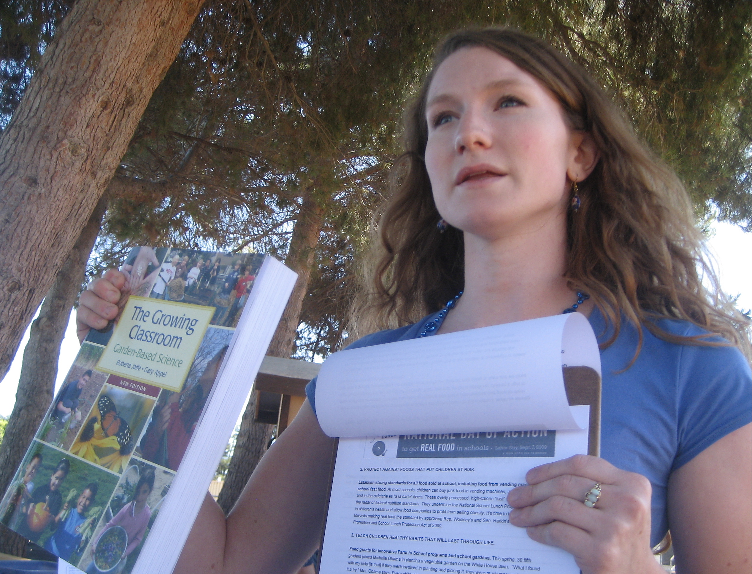 Top Photo: Emma Mae of Community Alliance with Family Farmers (CAFF). The Eat-In was also a teach-in about how to support local farms.