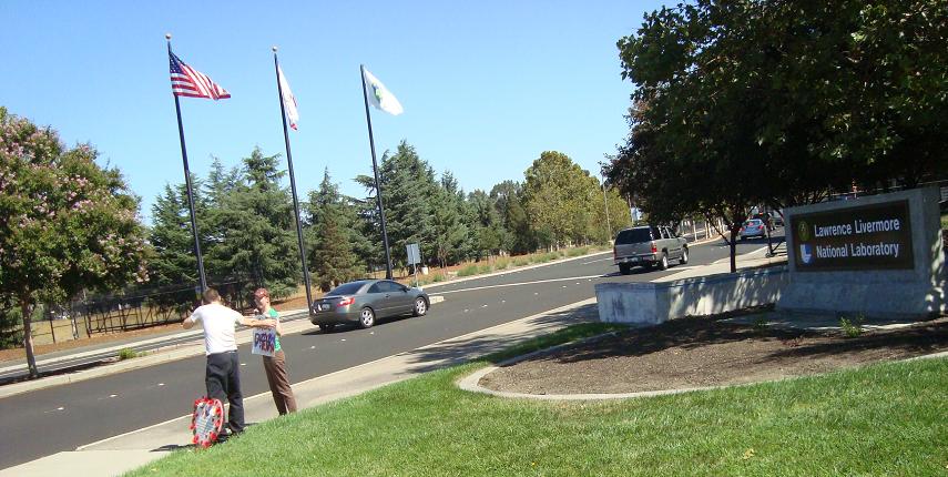 Today's vigil at Livermore Lab was appreciated by drivers and spectators.