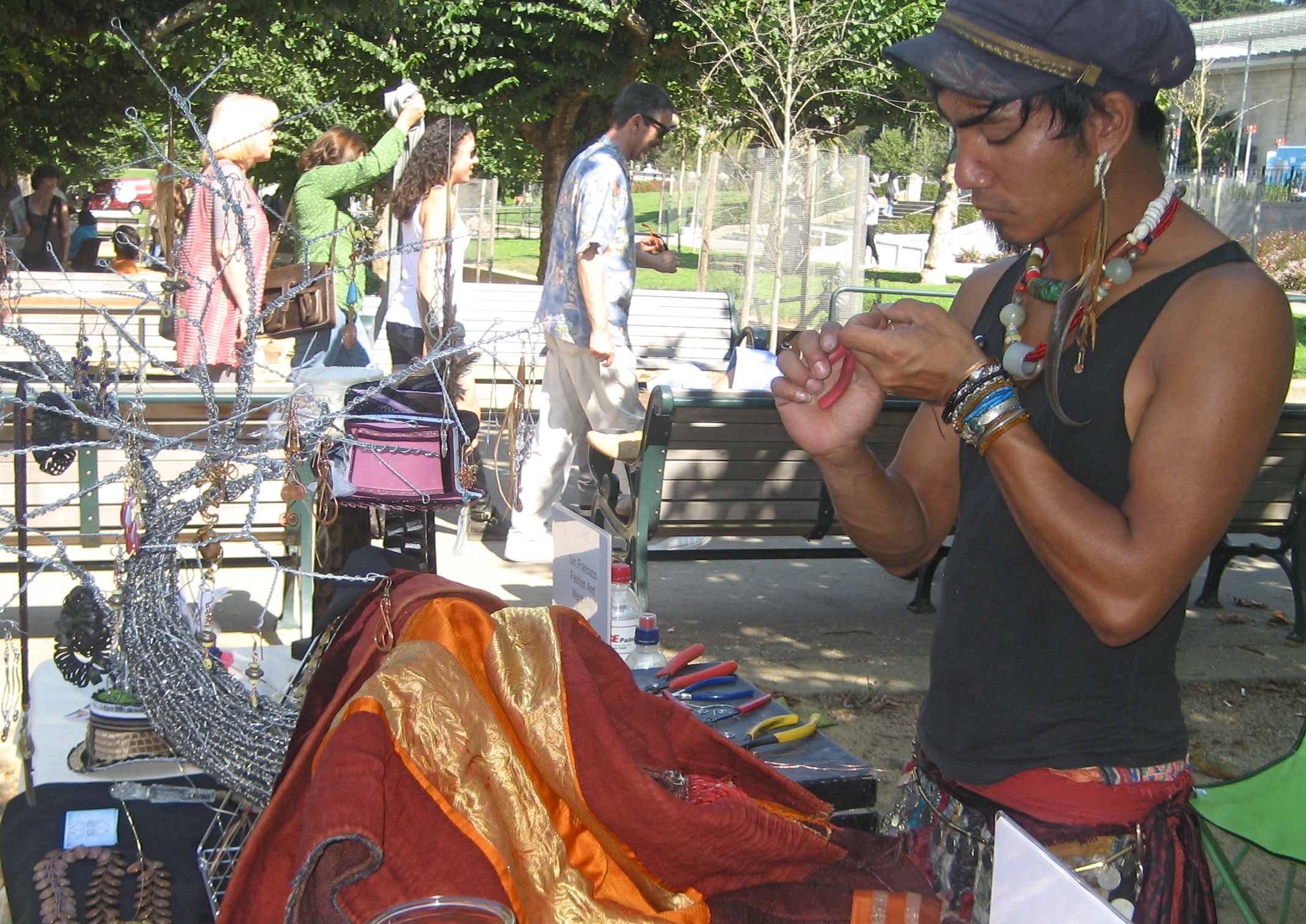 Other creative arts included clothing made from reformed business suits and guitar straps and belts fabricated from recycled car seat belts...