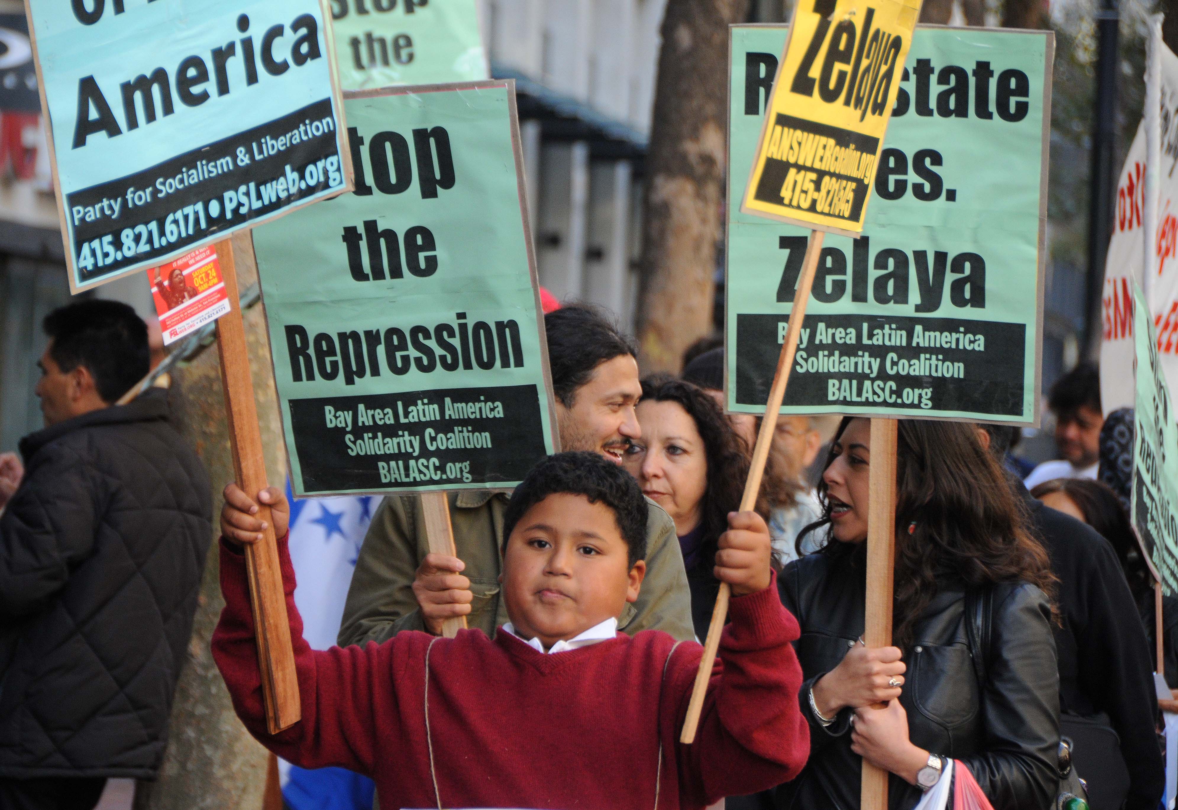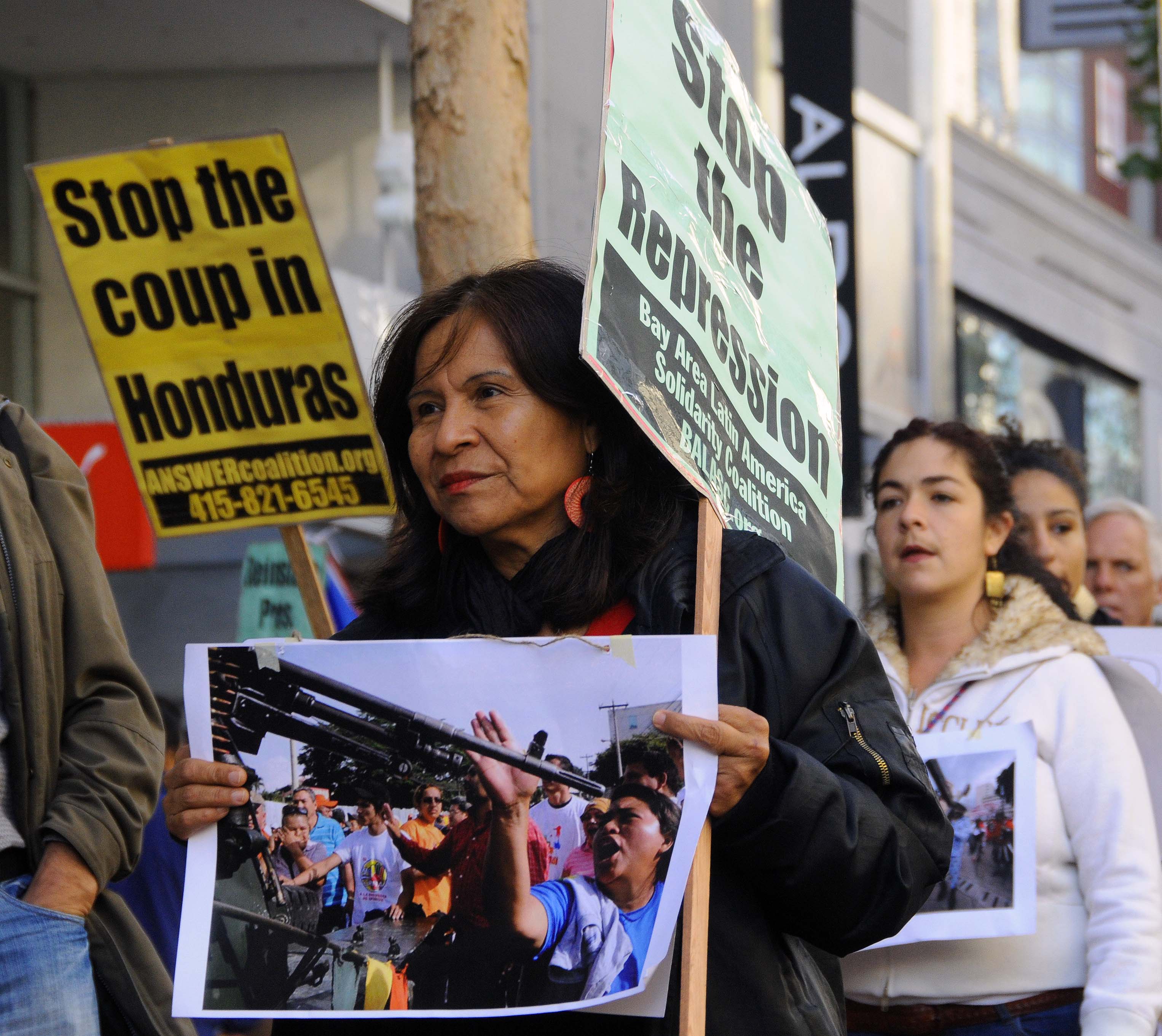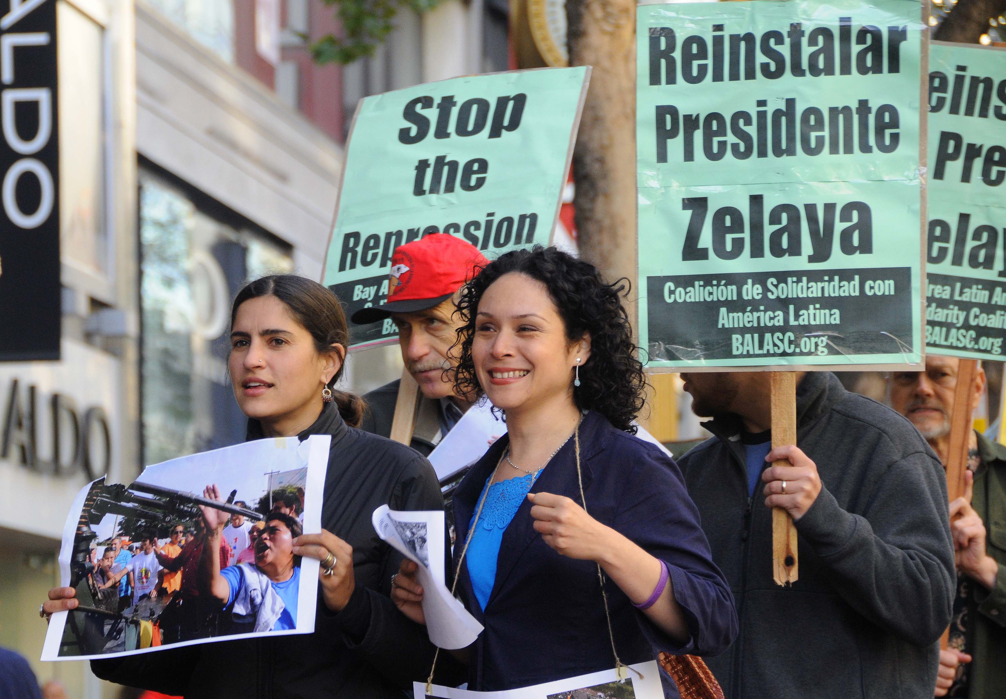 Activists in solidarity with the people of Honduras protested in downtown San Francisco calling for an end to the coup and the reinstatement of the democratically elected president; Manuel Zelaya.