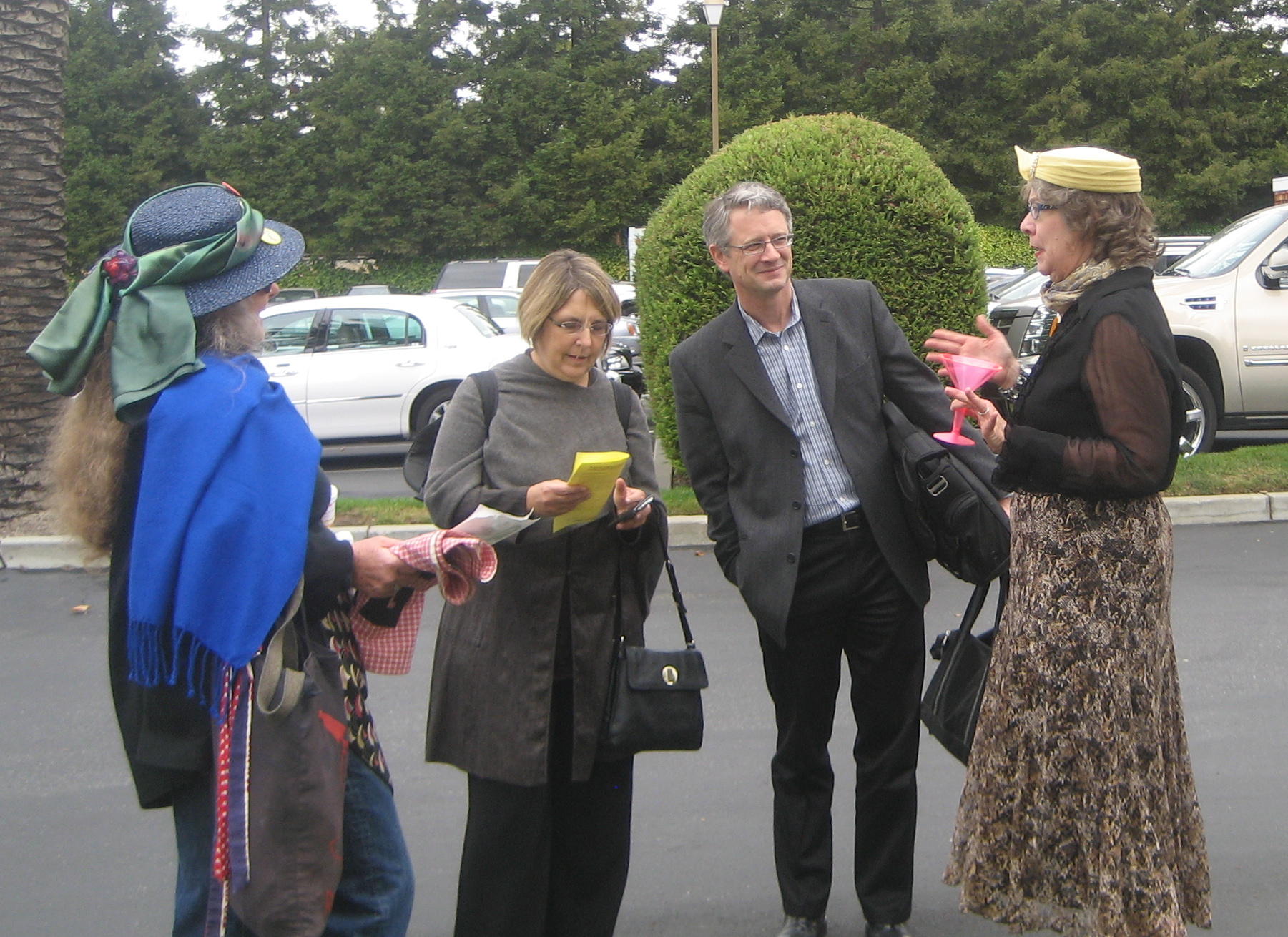 Singing health care songs was not enough this go round. The Grannies went on the offensive and tried to give the Billionaires a "shot of reality" in Menlo Park in front of the ritzy Stanford Park Hotel where the Lincoln Club was holding a fancy fundraising luncheon.