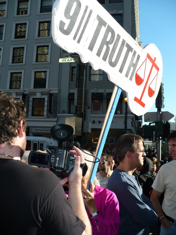 9/11 Truth activists came out in force today to welcome Obama to San Francisco and to demand that he look into the most important issue of the century — 9/11, the false flag event that has promised Americans and the world never ending war and curtailment of our civil rights.