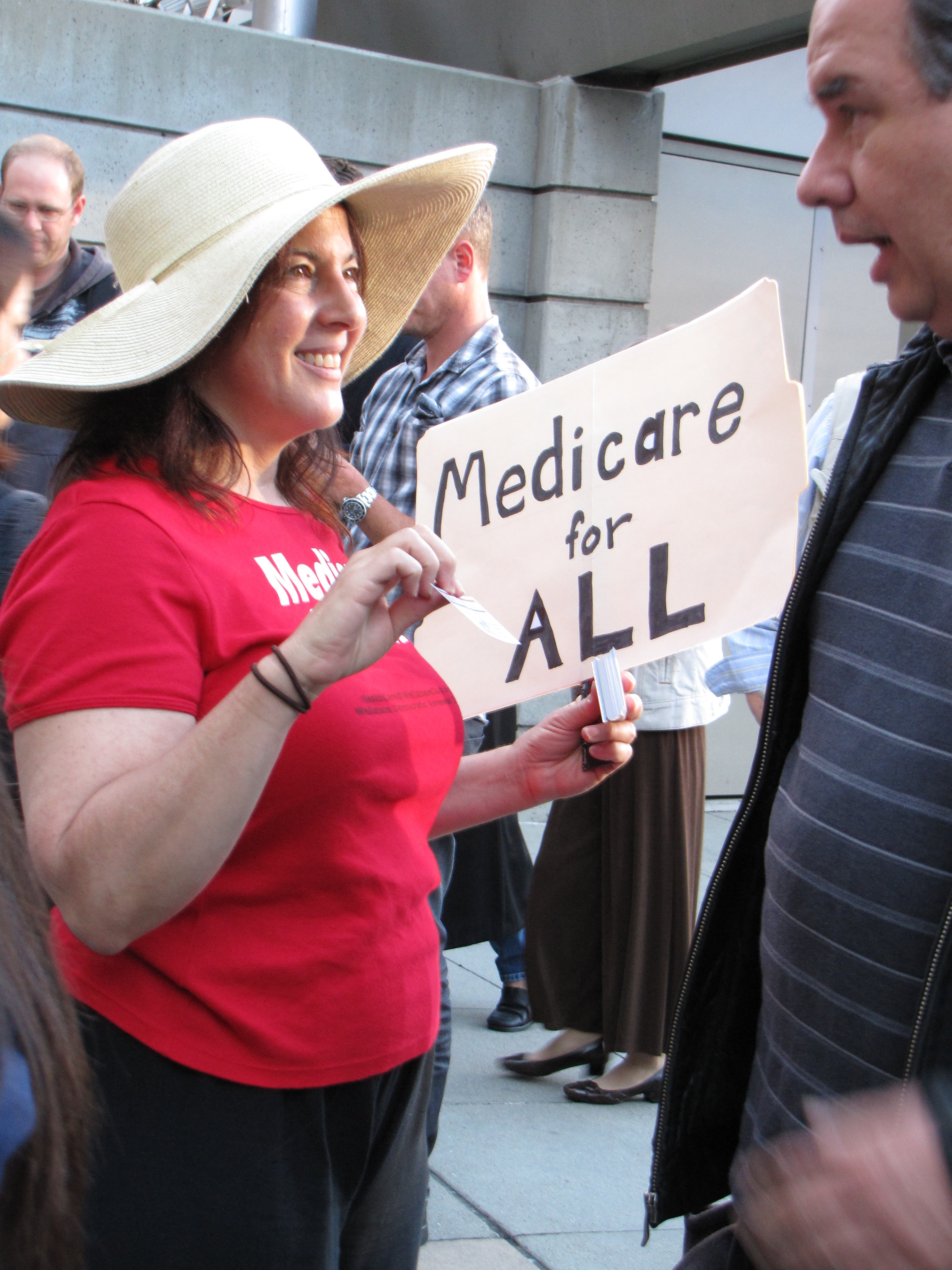 Obama came to San Francisco on October 15, 2009. The crowd outside was large and loud.