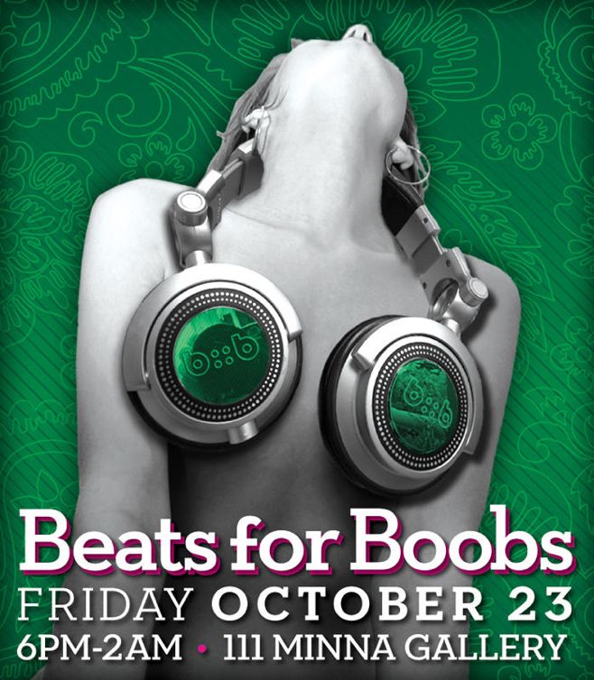 Beats for Boobs (http://www.beatsforboobs.org) will host its 6th annual fundraiser on FRIDAY, OCTOBER 23rd @ 111 Minna Gallery, 6 p.m. - 2 a.m. Beats for Boobs is an annual fundraising event that raises community awareness for breast cancer through a collective celebration of art, fashion, food and music.