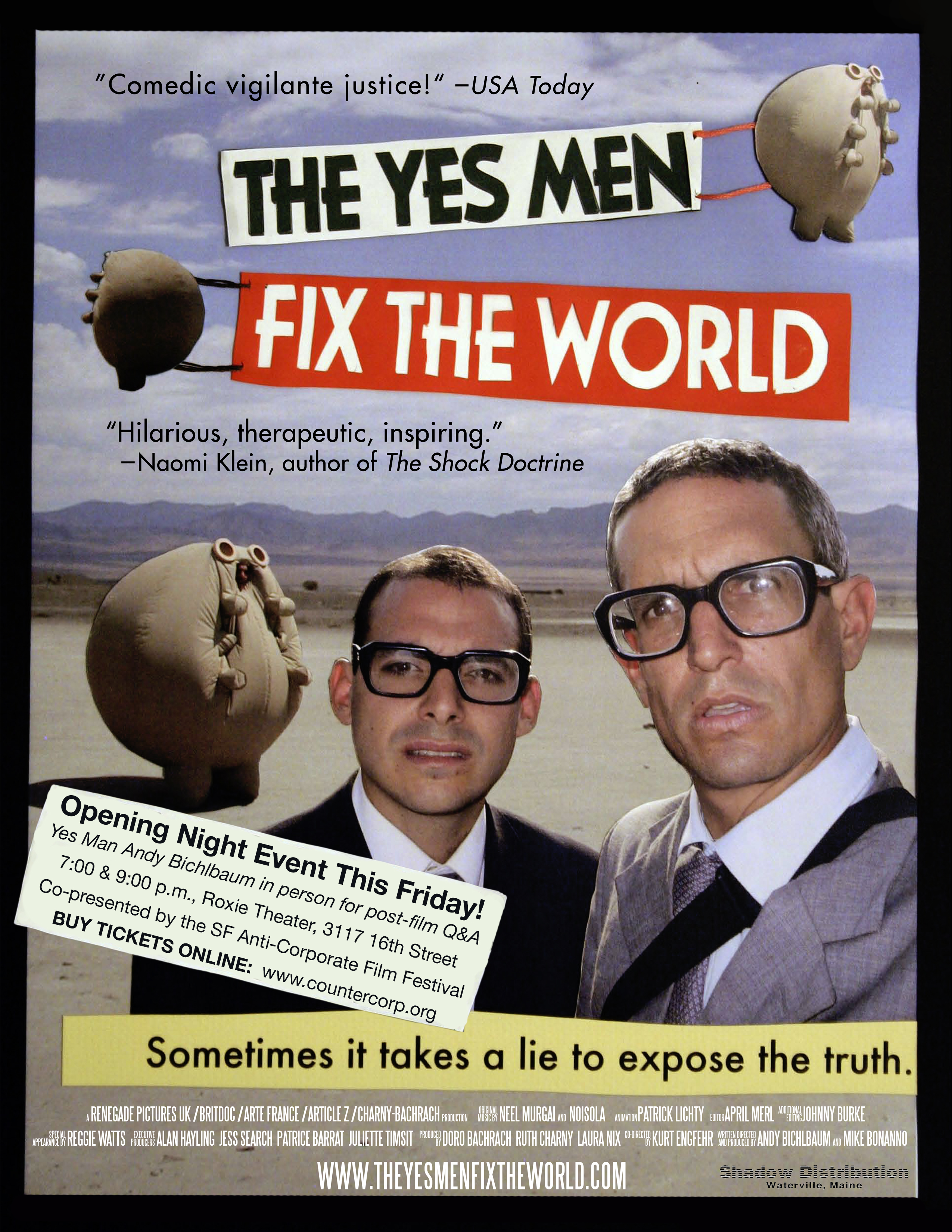 CounterCorp is co-presenting the San Francisco theatrical premiere of the new smash hit documentary, "The Yes Men Fix The World", on Friday, October 30 at the Roxie Theater on 16th Street.