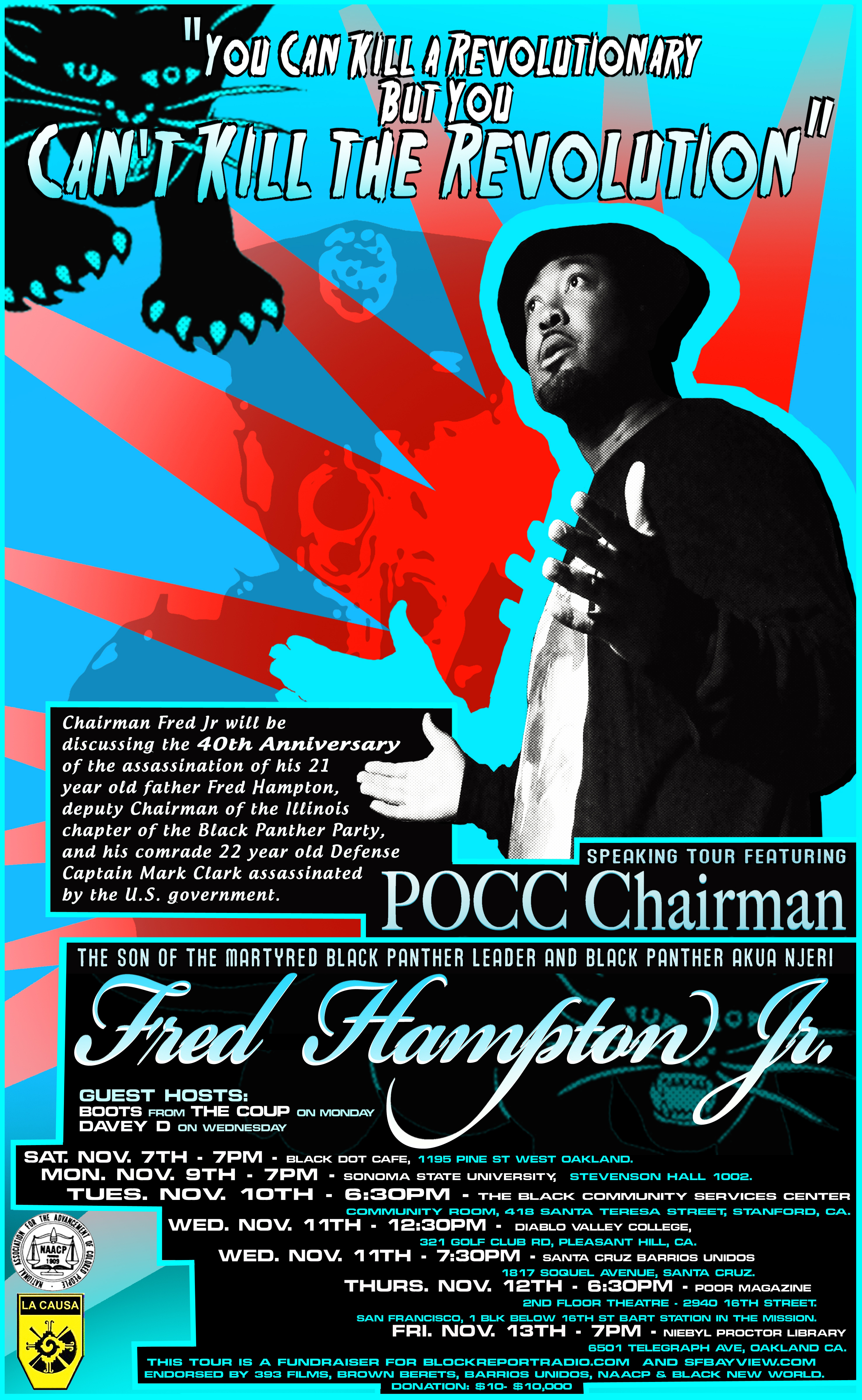 The tour is a fundraiser for BlockReportRadio.com and SFBayView.com and is endorsed by 393 Films, Brown Berets, Barrios Unidos, NAACP and Black New World. Donation: $10-$10,000