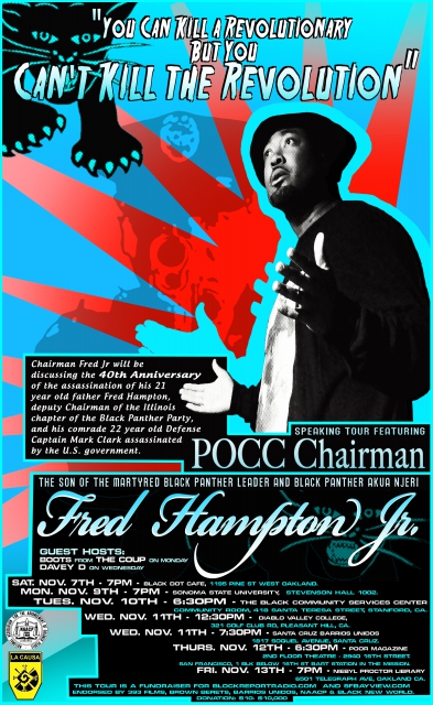 Today, Chairman Fred Hampton Jr. heads the Prisoners of Conscience Committee, carrying on much of his father's work. The tour is headlined "YOU CAN KILL A REVOLUTIONARY BUT YOU CAN'T KILL THE REVOLUTION!"