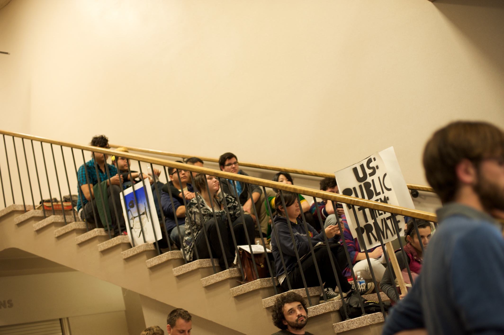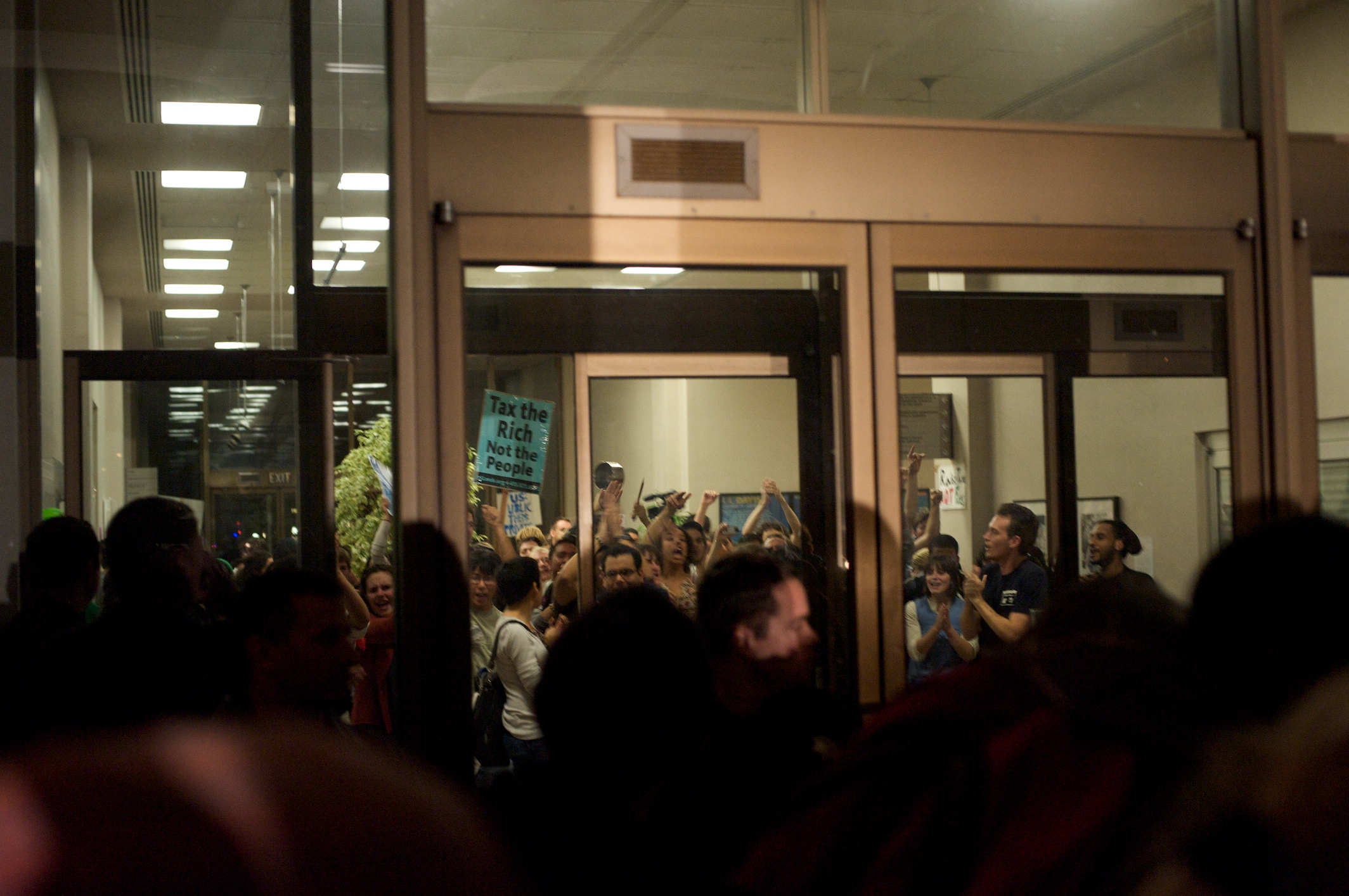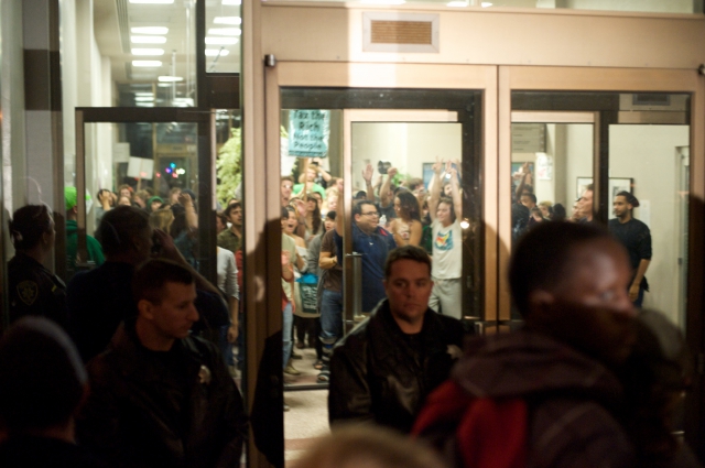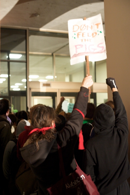 Hundreds of students gathered in and around UC Davis' Mrak hall (the main administration building) to protest a 32% hike in tuition over the next year. This tuition hike brings in state tuition to over $10,000/year. The building was eventually occupied by students. 52 students were arrested.