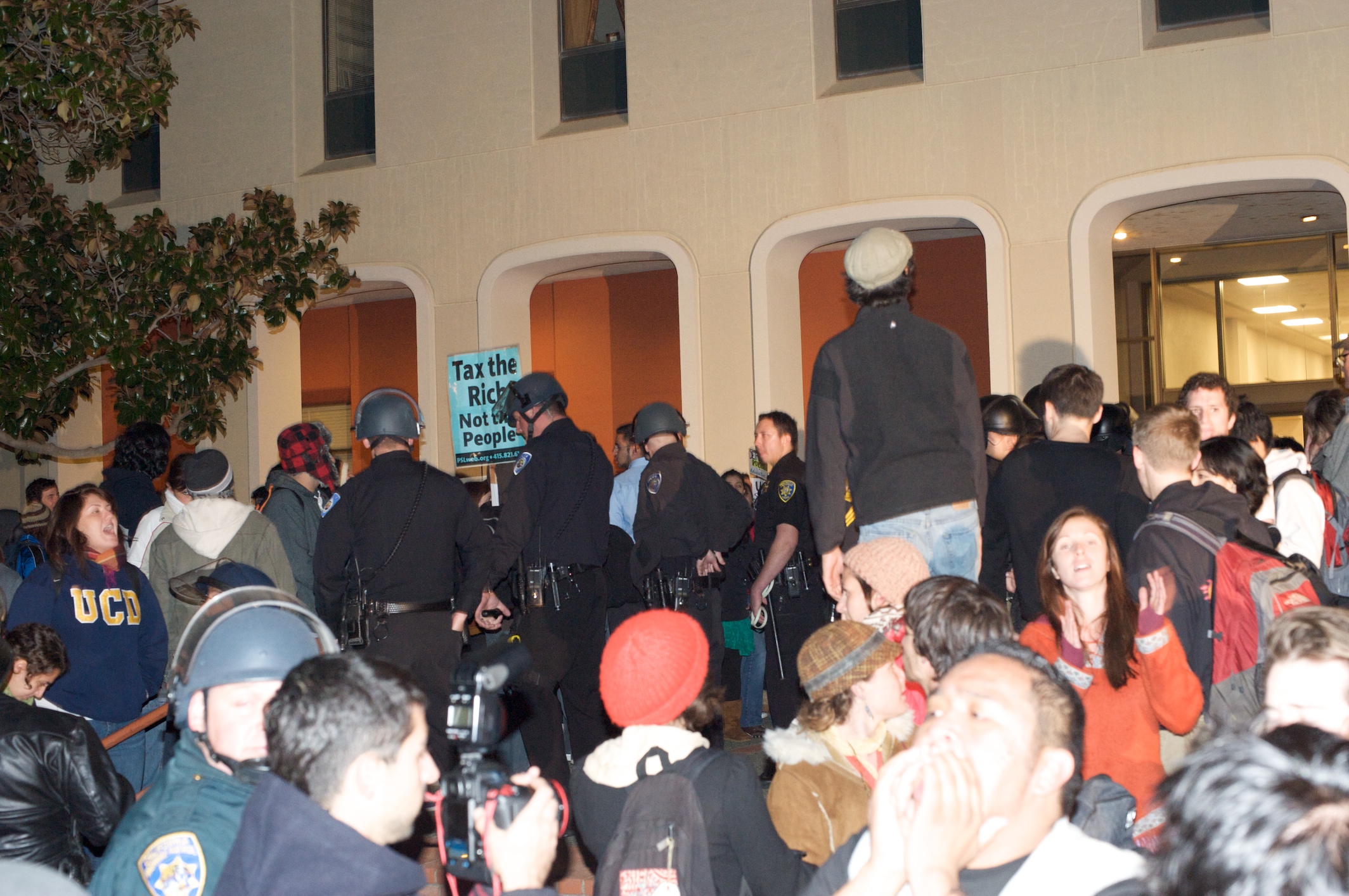Hundreds of students gathered in and around UC Davis' Mrak hall (the main administration building) to protest a 32% hike in tuition over the next year. This tuition hike brings in state tuition to over $10,000/year. The building was eventually occupied by students. 52 students were arrested.