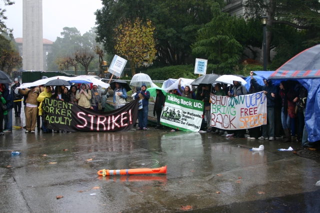 UC Berkeley Strike Day 3 Morning Picketlines in the rain.