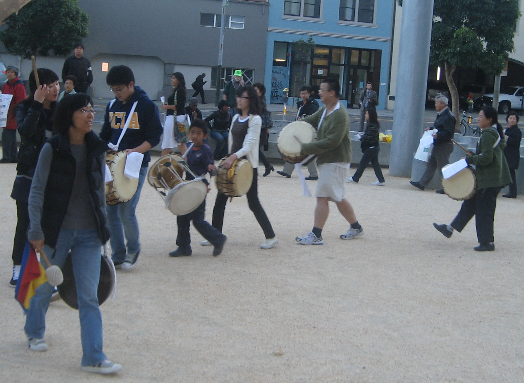 Dancing and Drumming for Healthcare in front of Pelosi's Office