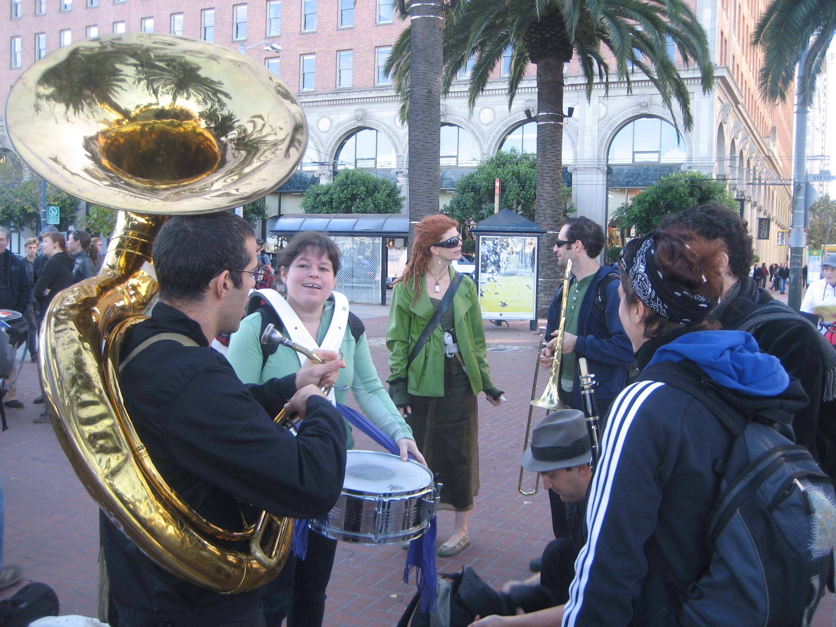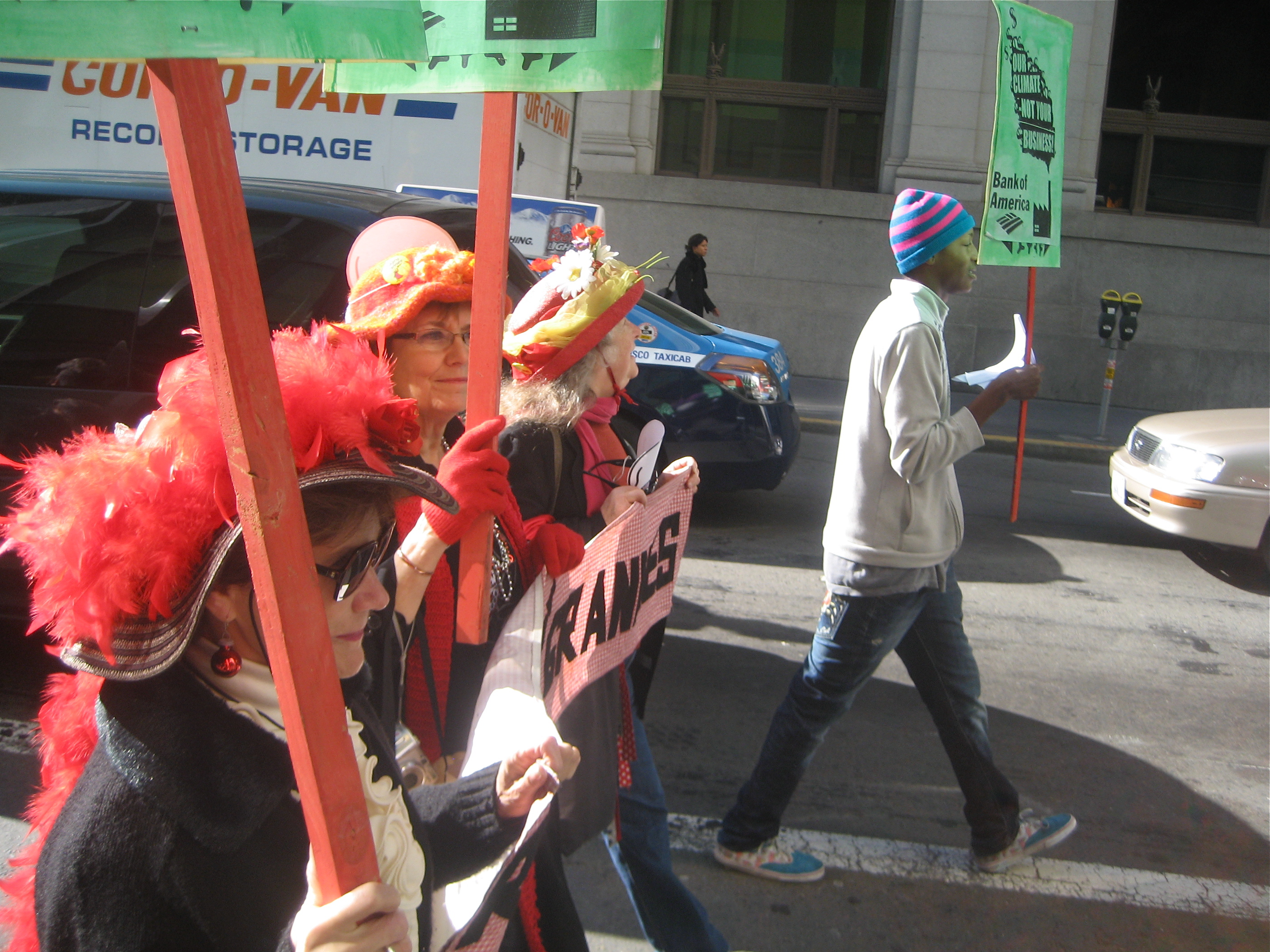Rallying at Justin Herman Plaza in San Francisco, then marching to the Bank of America and blocking all the doors!