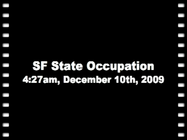 San Francisco State University students occupied the College of Business building (later renamed Oscar Grant Memorial Hall by students) and barricaded the doors from the inside at about 4am on December 9th, 2009. On the outside, students and other supporters protected the occupation by blocking the doors with their bodies throughout 24-hour occupation. After California State University and San Francisco police raided the building at about 4am on December 10th, students in solidarity moved to 19th Street and attempted to block police vans from removing arrested occupiers.