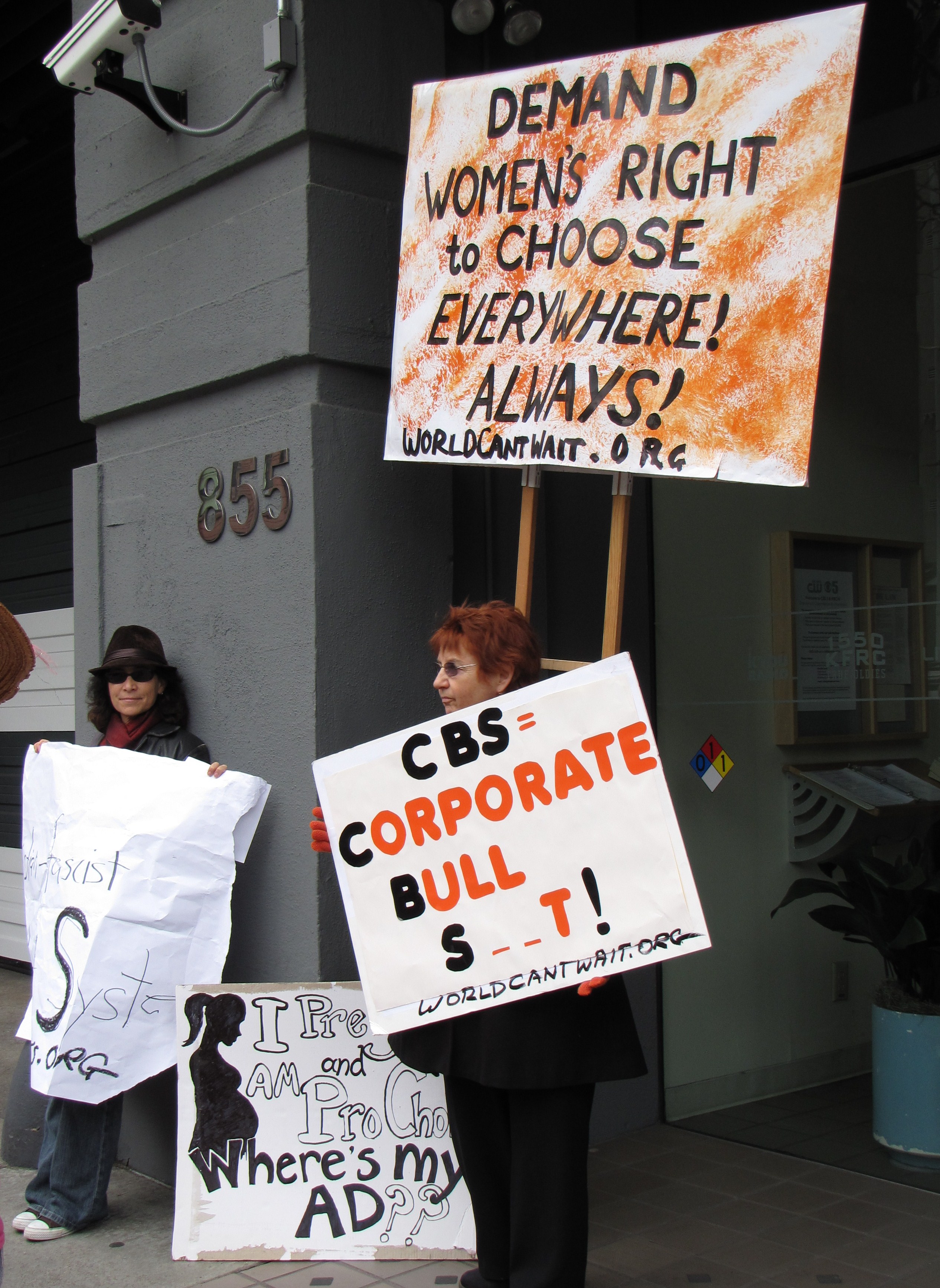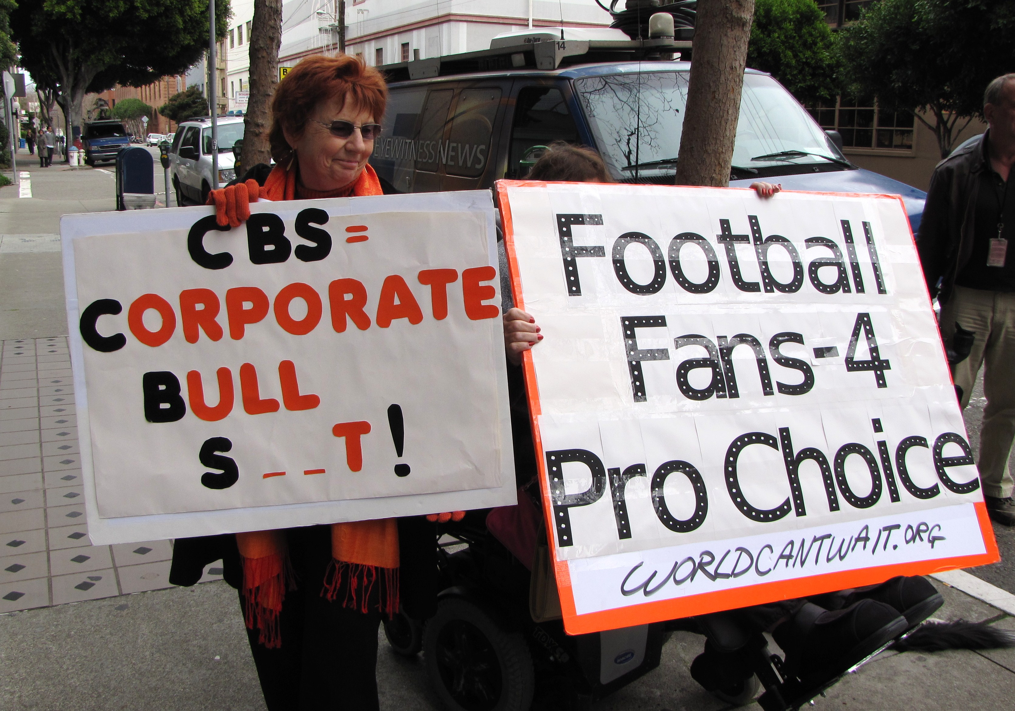 Demonstration against CBS plan to air anti-woman's health ad during the Super Bowl this Sunday February 7.