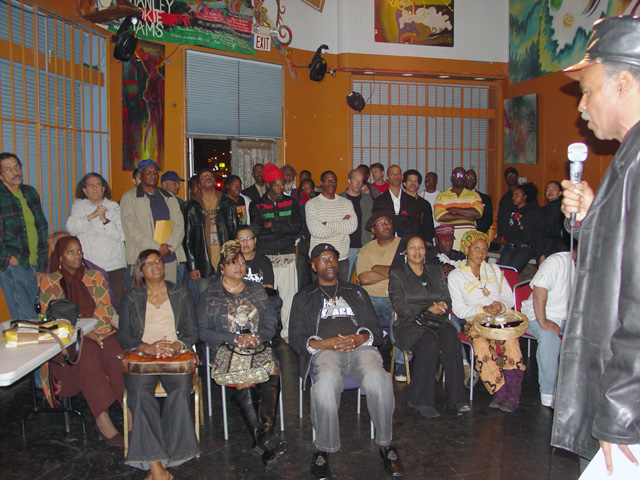 Speakers included JR Valrey of Block Report Radio and the SF BayView; Kenneth & Cephus Johnson, uncles of Oscar Grant; Jack Bryson, father of two of Oscar Grant's friends; Fred Hampton Jr, Chairman of the POCC and son of Black Panther Fred Hampton; Dedon Kamathi of Freedom Now on KPFK; Minister Keith Muhammad of the Nation of Islam; Keishia Brunston, aunt of Deandre Brunston, murdered by LA Sheriff's deputies in 2003; Hank Jones & Ray Boudreaux of the SF8, and SFSU student Erika Walker. The final half hour of the Town Hall was opened up to community members in attendance to speak to the issues raised earlier and to relate their own experiences.