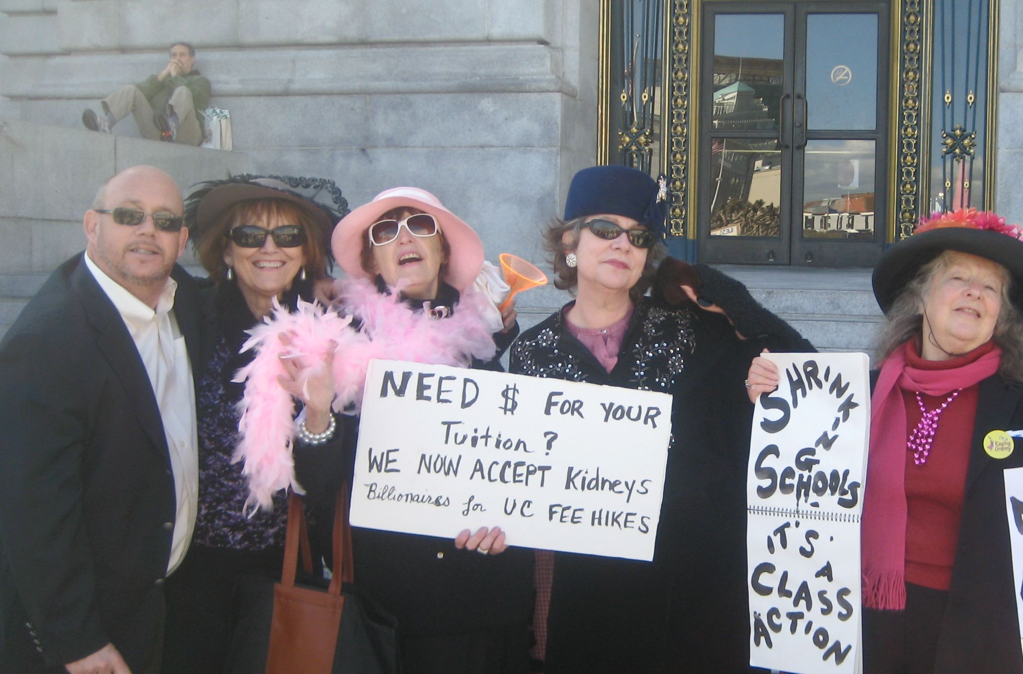 The Billionaires carried a sign that read: Need Money for Tuition? UC now accepts kidneys for payment.