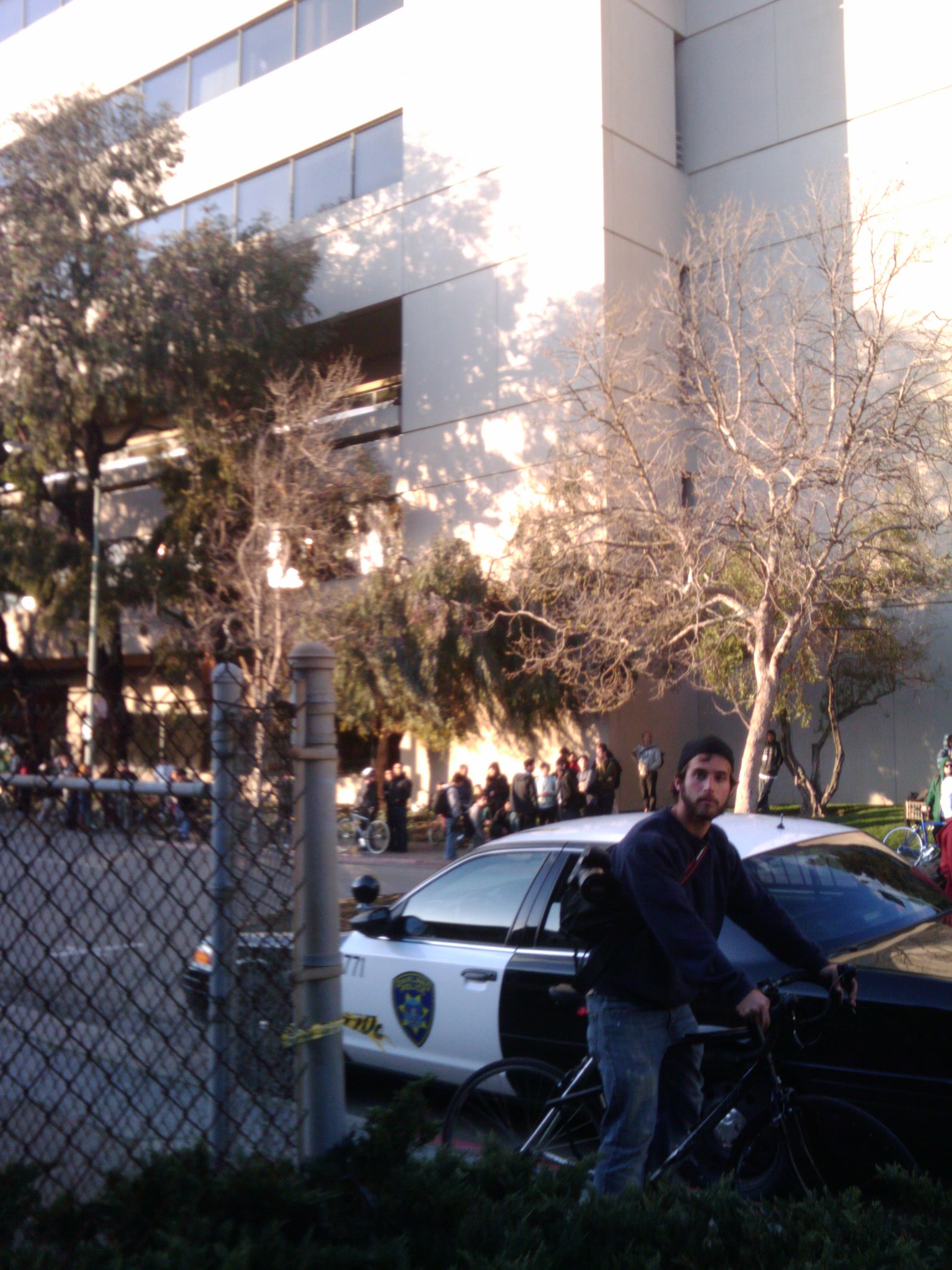 one person fell out of a tree trying to escape. people are currently being arrested on the freeeway