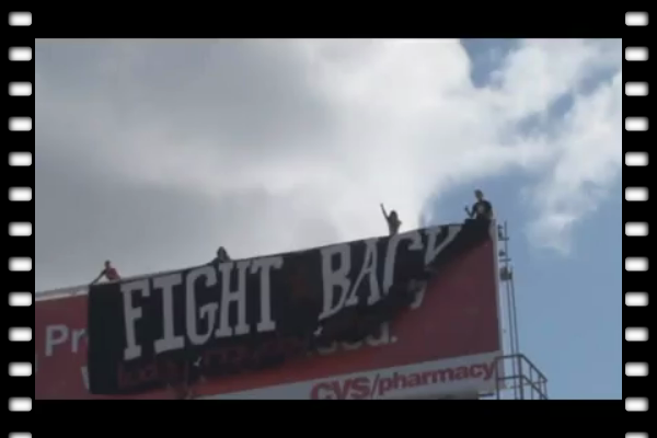 March 4th was the day of action to protest cuts to education resulting in lay-offs and higher tuition fees. Demonstrators marched from UC Berkeley to Oakland city hall. Along the way several activists displayed this banner saying "fight back" energizing the crowd.