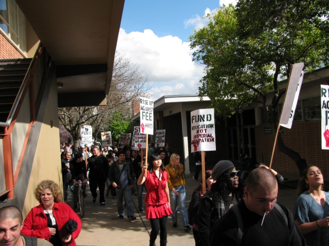 finally, after the rally ended a permitted march through campus did take place, with a second, shorter rally at the quad. afterwards, many of the students went to the oakland and san francisco rallies.