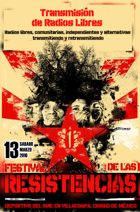 Aquí para hacerles un llamado a las radios libres, comunitarias y alternativas que tengan la posibilidad de llegar a transmitir en convergencia desde el Festival de las Resistencias el 13 de marzo de 2010, en el deportivo del SME en la Ciudad de México.