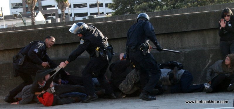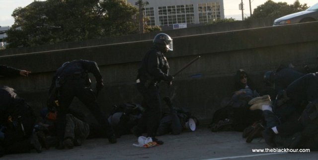 Towards the end of the March 4 'Day of Action' to Defend Public Education, over 150 people took over an Oakland freeway in a direct action that caused traffic to be shut down for an hour. When police closed in on protestors, some began hitting students with their clubs in their legs, arms and backs.