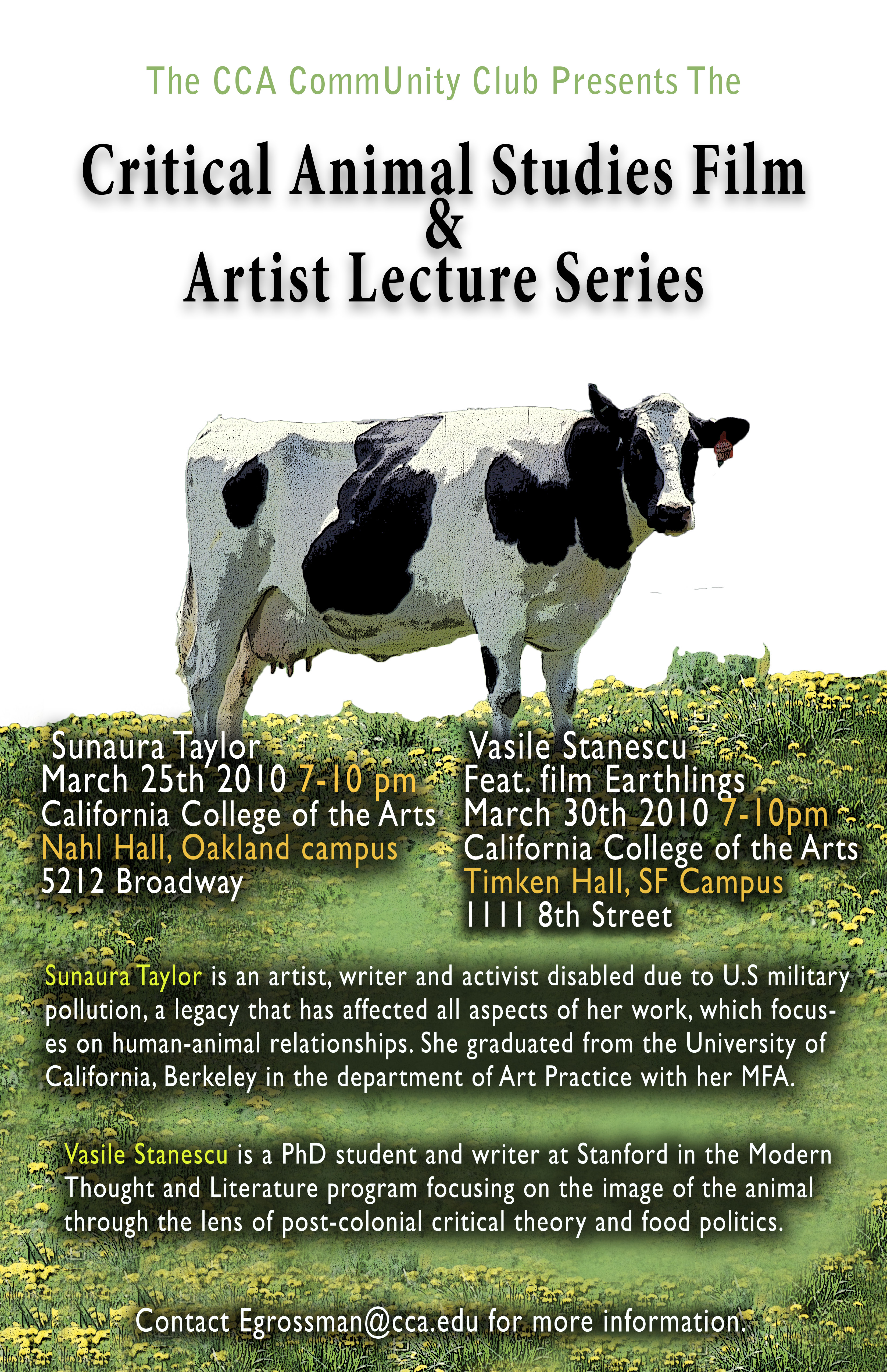The Critical Animal Studies Film and Artist Lecture Series is a student organized event at California College of the Arts. This event is open to the public.