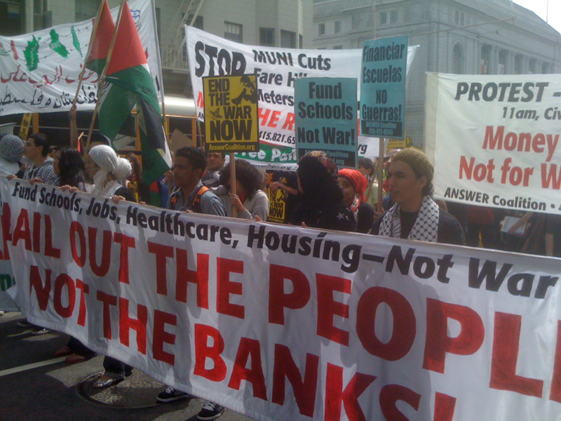 Though we may have many disagreements with the tea party people at least they are calling for a massive tax protest on April 15. ANSWER should also be joining them. Money talks, and when enough Americans refuse to pay for the bombs and bullets that are killing so many in the Middle East (and elsewhere) then the politicians will listen to us.