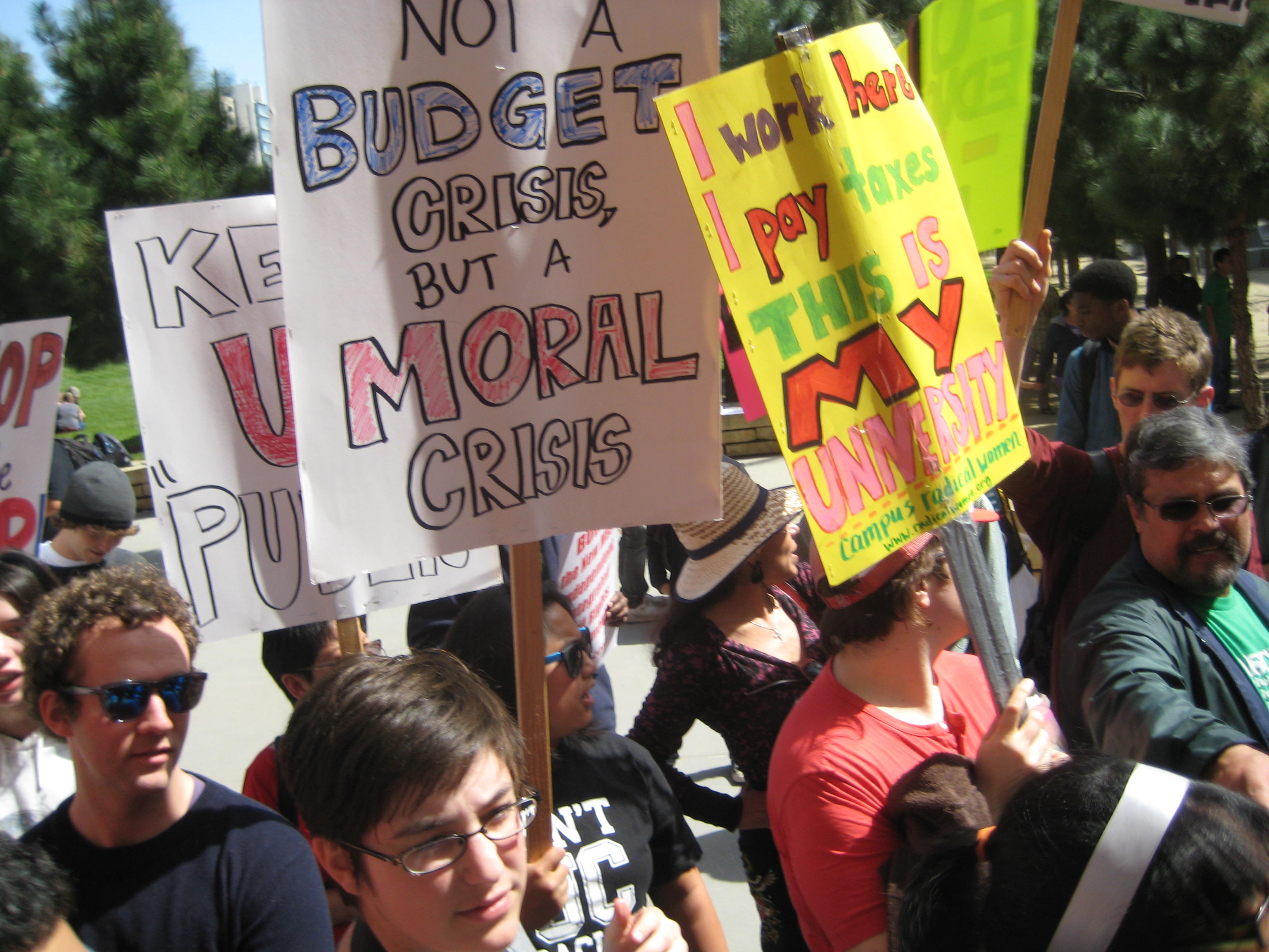 on march 23, students and workers rallied outside the uc regents meeting at UCSF mission bay to protest the ongoing fee hikes, campus worker furloughs and layoffs, administrative bloat, and the continuous process of privatization being promoted by the regents.