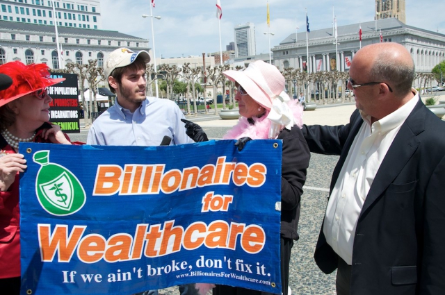 Pt II of the story of the Billionaires for Wealthcare outnumbering a few tea party protesters.