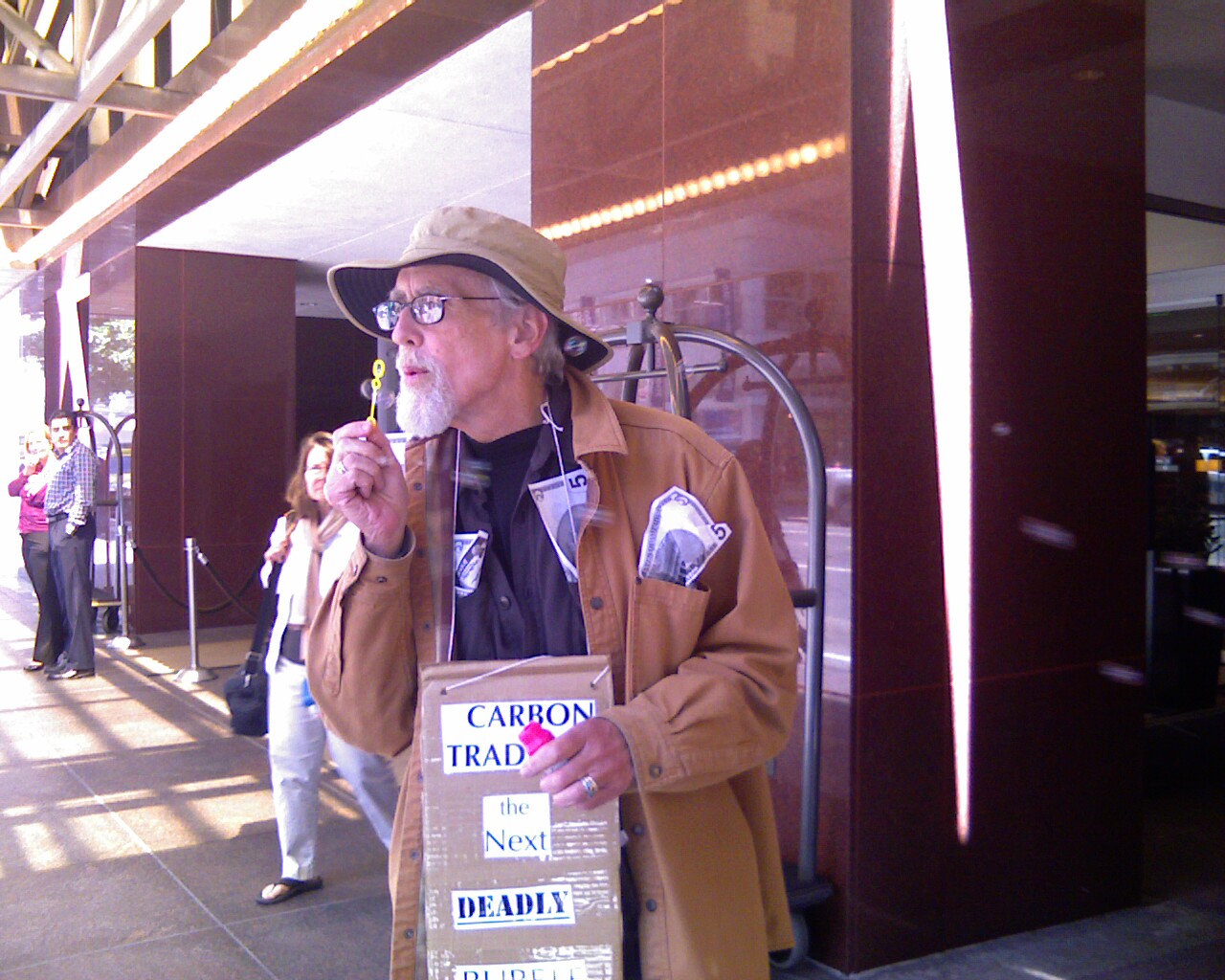 On April 15 protesters gathered to demonstrate against carbon trading in San Francisco